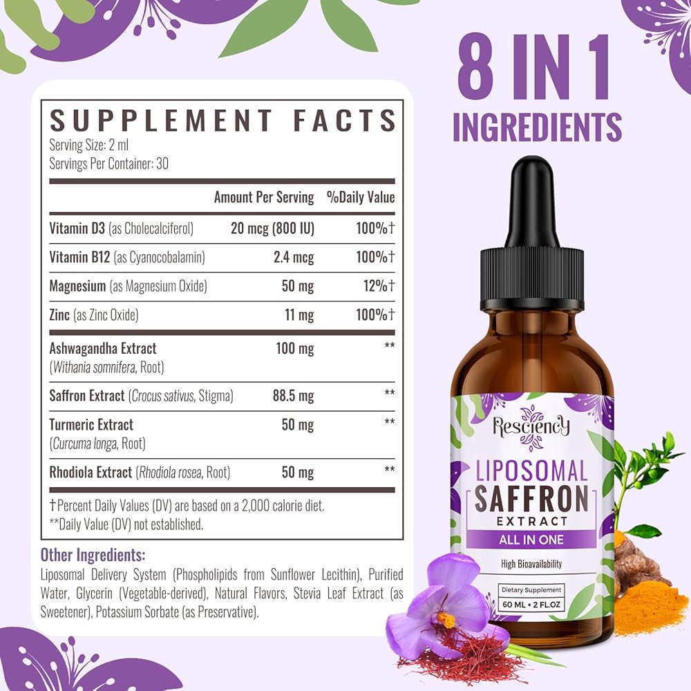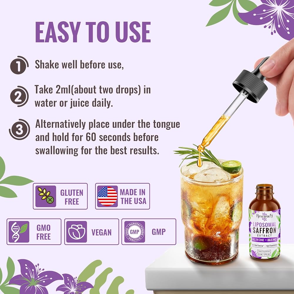 • طبيعية وقوية وفعالة: قطرات مستخلص الزعفران الدهنية من ريساينسي مصنوعة بفخر في الولايات المتحدة الأمريكية، ومصنوعة من مكونات عالية الجودة، وخالية من الإضافات الاصطناعية، مما يضمن أقصى قدر من النقاء والفعالية للزعفران.