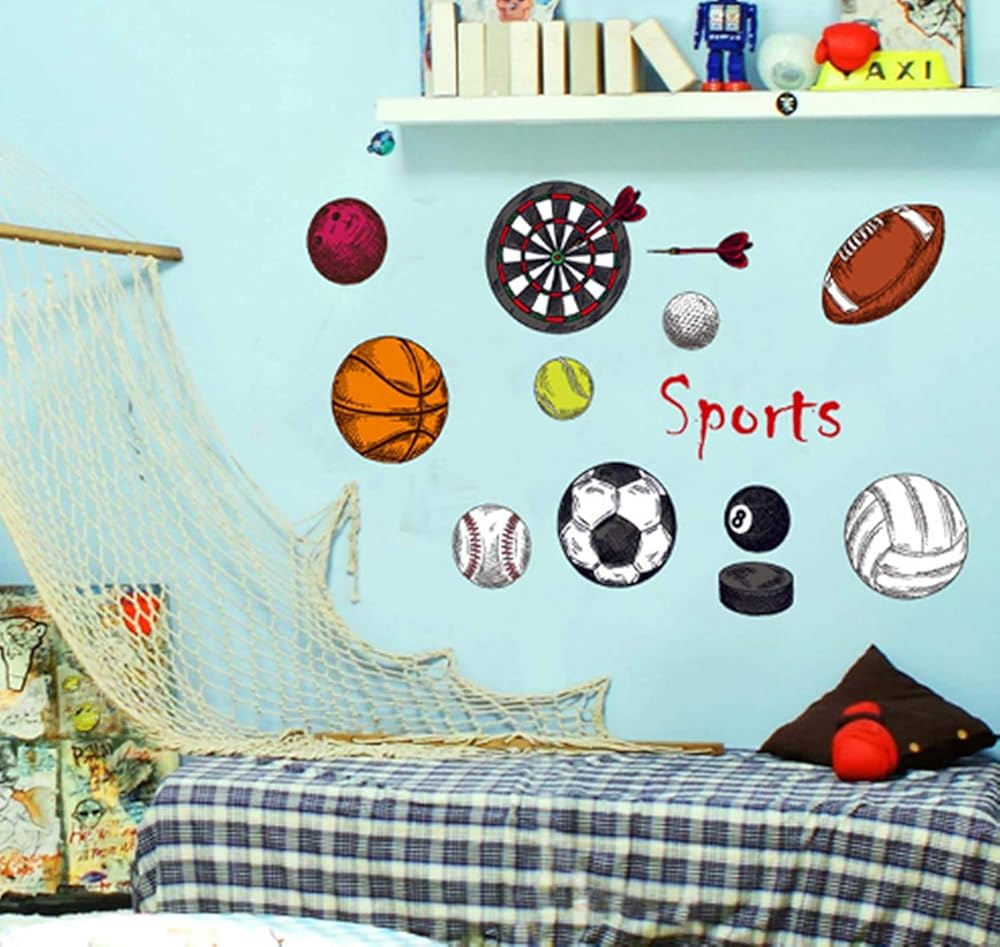 Our wall stickers have sports ball wall stickers of different sizes and styles, including basketball, volleyball and darts tennis. Add a beautiful mood to your room with our wall stickers