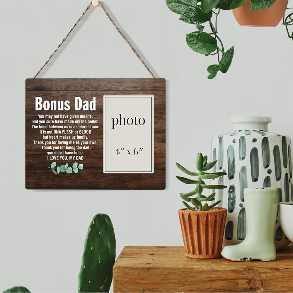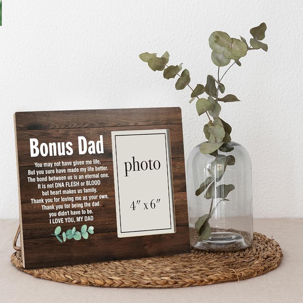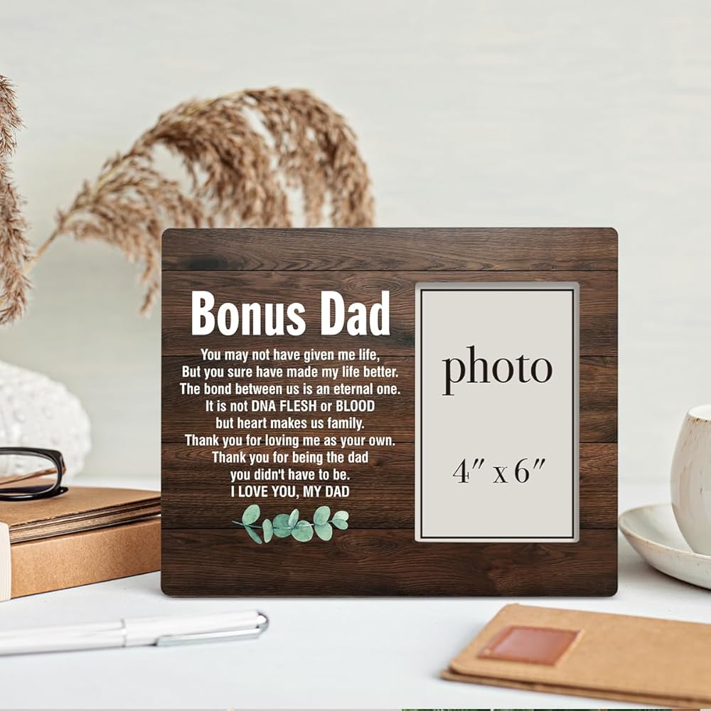 إطار صورة هدية إضافية للأب، هدية إضافية للأب من ابن الابنة، هدايا لزوج الأم، زوج الأم، إطار صورة خشبي إضافي للأب مقاس 8 × 10 بوصات، حامل على الحائط وسطح الطاولة - صورة مقاس 4 × 6 بوصات