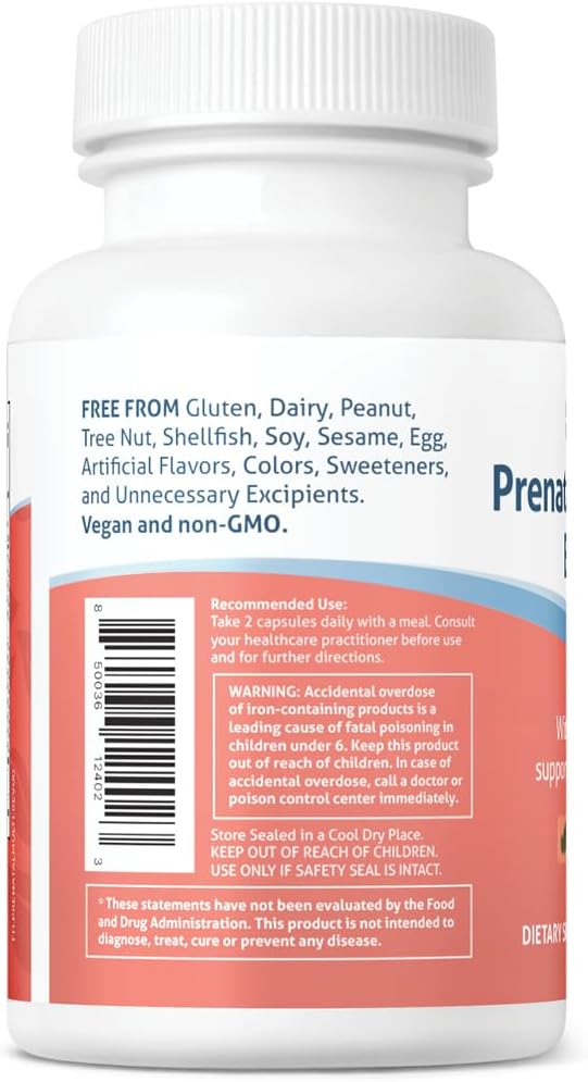 Includes Choline, DHA, and Myo-Inositol for Healthy Gestation and Fetal Development: Our formula provides 110mg choline, essential for healthy brain and eye development, and 200mg DHA, a key nutrient supporting early neurodevelopment and lifelong mental health. Plus Prenatal Multivitamins Essentials is the only prenatal that contains myo-inositol, important to supporting healthy gestational term.