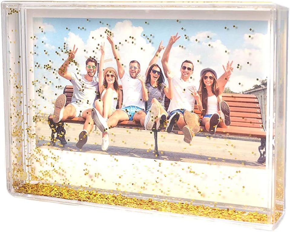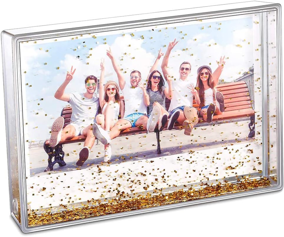 2. This photo frame can sit up by itself on either side for one side desktop display, but it is not a good idea to hang it on a wall because hanging it on the wall would eliminate the charm that you can shake the glitter inside like a snow globe.