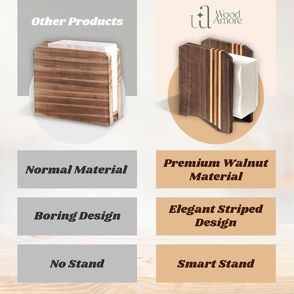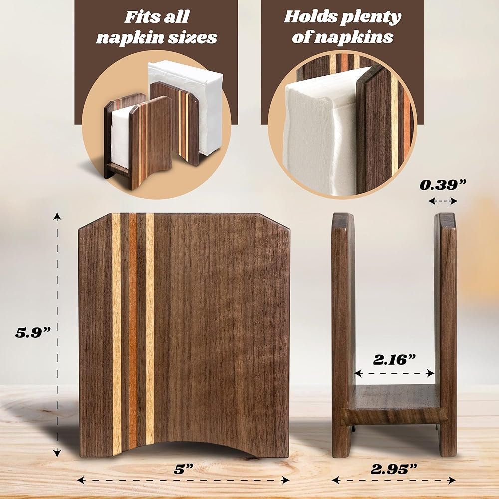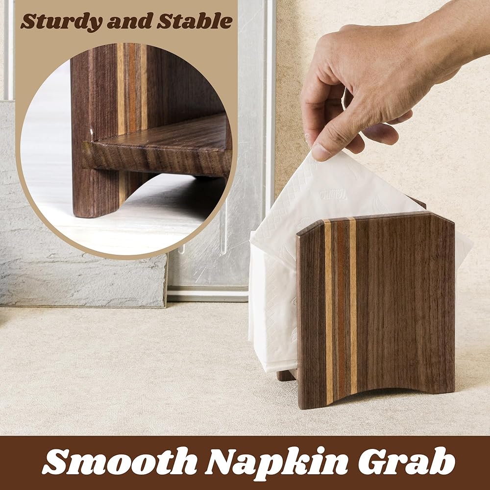 موزعات مناديل الطاولة عالية الجودة: مصنوعة من خشب الجوز الفاخر، حامل مناديل الطاولة هذا قوي ومصمم ليتحمل الظروف القاسية في المطبخ والبيئات التجارية.