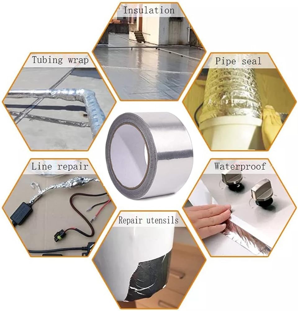 ★Use:【Foil Tape Suitable for Smooth flat and Irregular Surfaces. Commonly used for hot and cold air duct Sealing, Aluminum pipe Insulation, Aluminum, Stainless Steel and Plastic Joint/Joint Sealing, Temporary Repair of Metal Surfaces, Copper pipe Fixing, etc. Versatile to meet your Daily needs.】