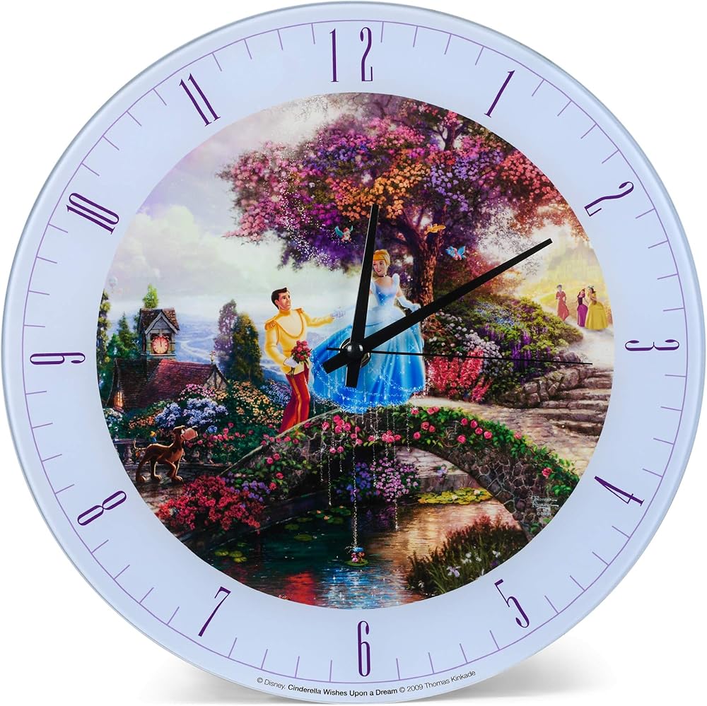 مارك فيلدشتاين وشركاه سندريلا ديزني كينكيد تتمنى على حلم أزرق 12 بوصة ساعة حائط زجاجية مستديرة