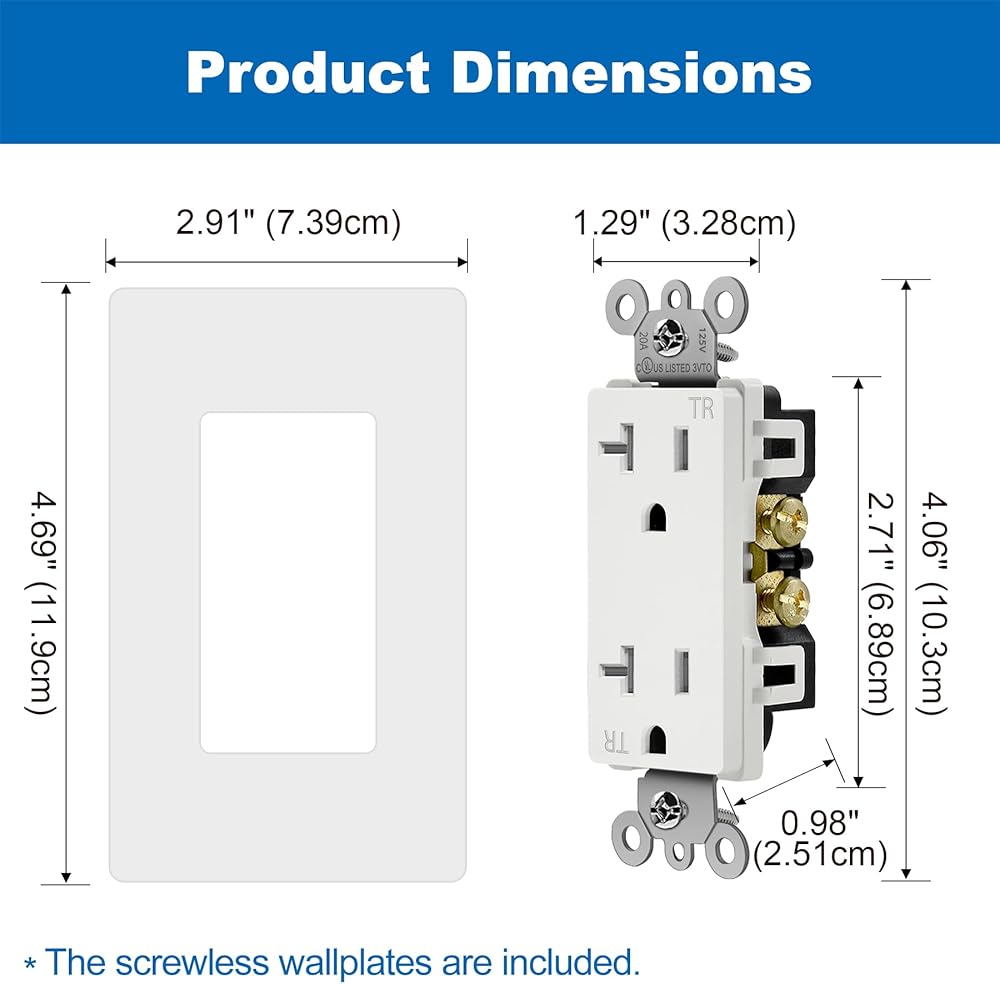 - 20 أمبير/125 فولت/2500 وات، لوحة الحائط متضمنة، مدرجة في قائمة UL