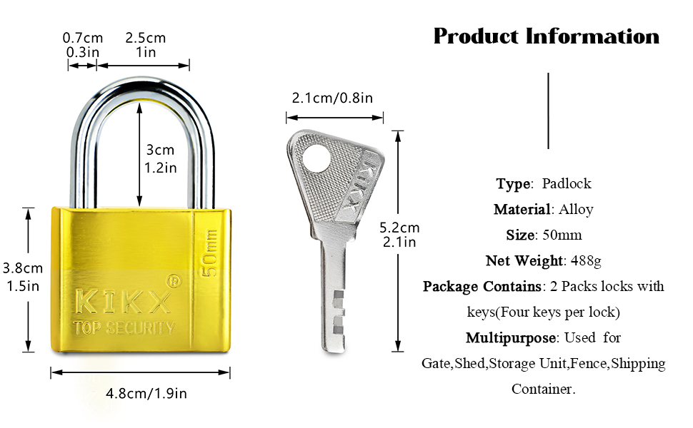 مجموعة واسعة من التطبيقات: هذا القفل مناسب لأبواب البوابة، والسقيفة، والمستودعات، والجراج، والخزائن وغيرها من الأماكن التي تتطلب أقفال.
