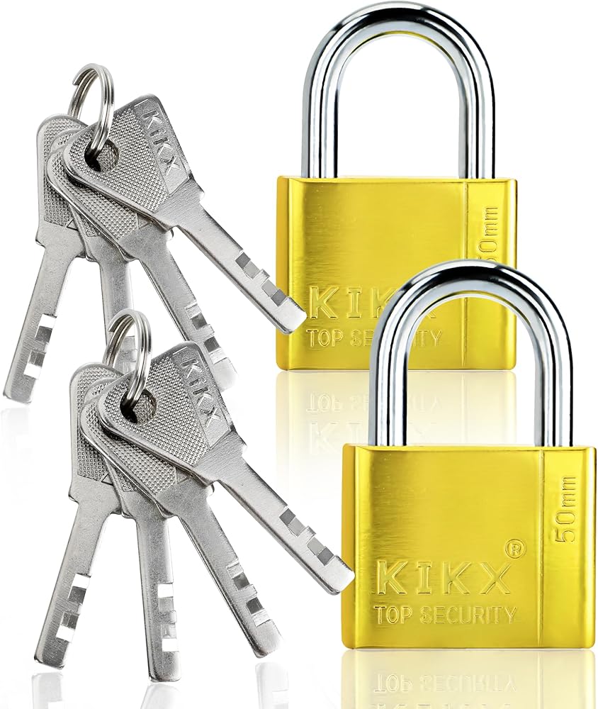 محتويات المجموعة: قفلان آمنان، كل قفل يأتي مع 4 مفاتيح مقابلة. مفاتيح القفلين ليست عالمية.