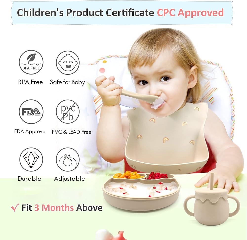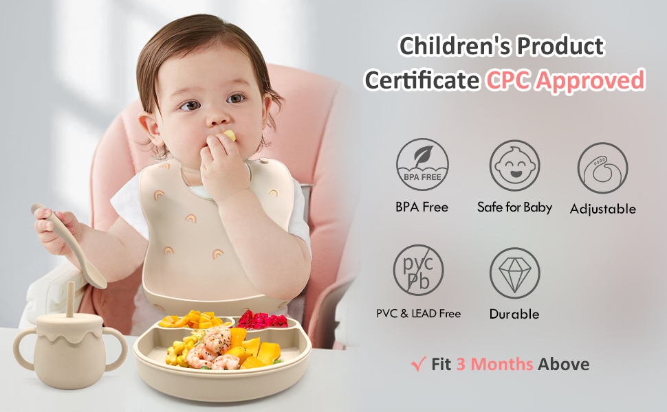 【السلامة أولاً 】 مجموعة تغذية الأطفال الرضع مصنوعة من مادة السيليكون الغذائية عالية الجودة بنسبة 100%. لقد تم اختباره بدقة من خلال معايير CPSIA وCSPA المعتمدة، وشهادة CPC (شهادة منتج الأطفال). سلامة طفلك وراحة بال أمك تعني أكثر بالنسبة لنا.