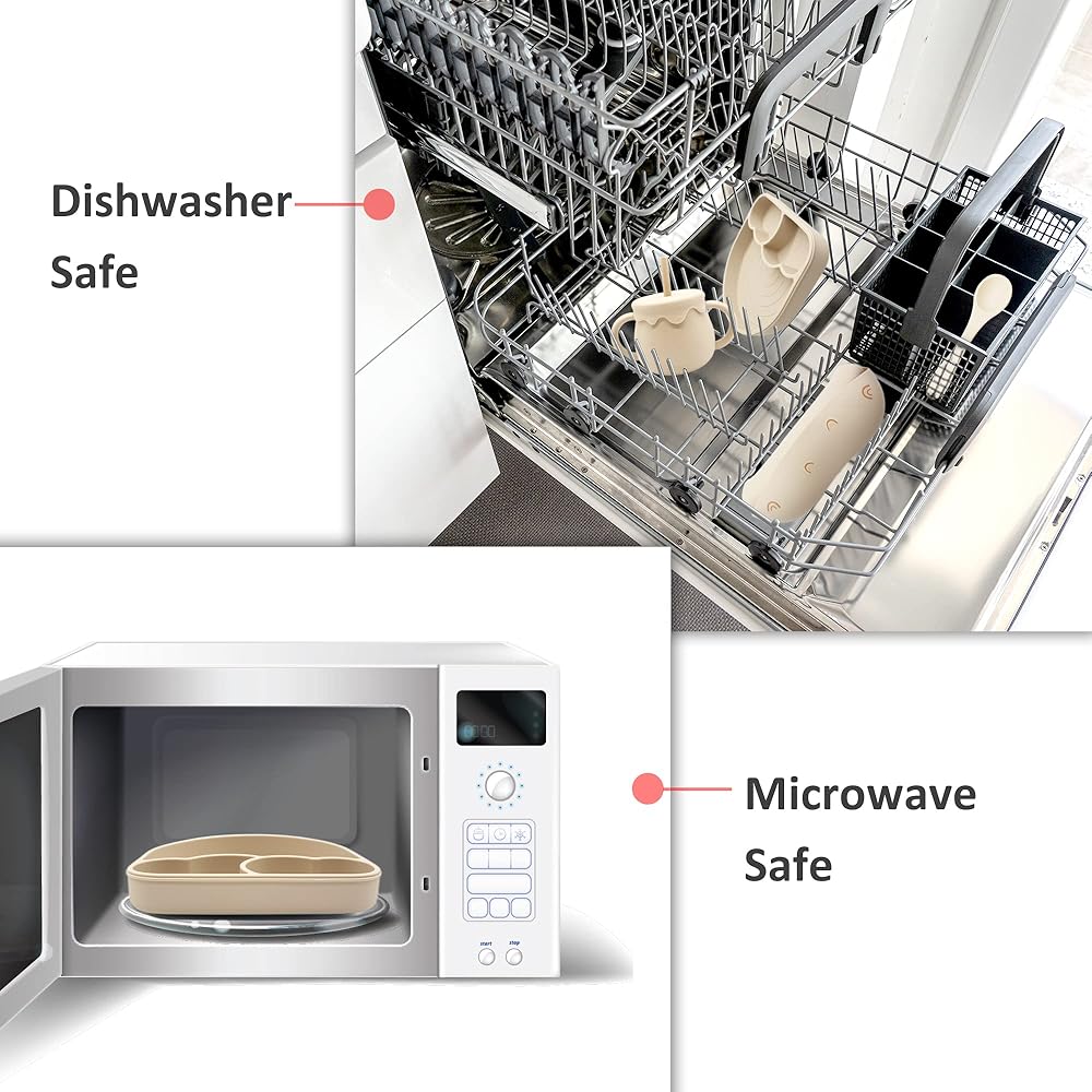 【سهلة التنظيف والحمل】مريلة مقاومة للماء والزيوت تحافظ على البقع وسهلة التنظيف بالمسح. يمكنك وضع مجموعة التغذية المصنوعة من السيليكون في غسالة الأطباق، وهي مناسبة لفرن الميكروويف، أو الثلاجة. وفر وقتك مع أدوات مائدة الأطفال سهلة التنظيف. خفيفة الوزن، ما عليك سوى وضع مجموعة التغذية في حقيبتك.