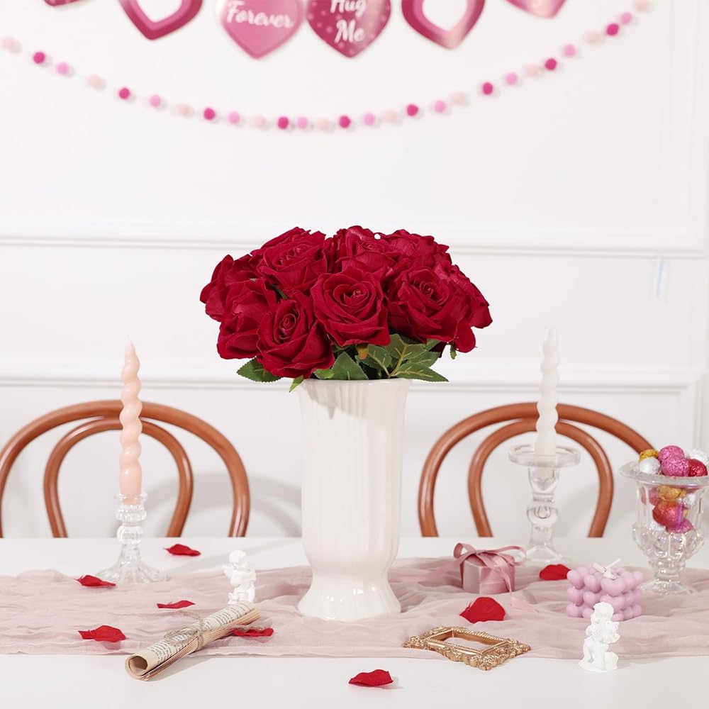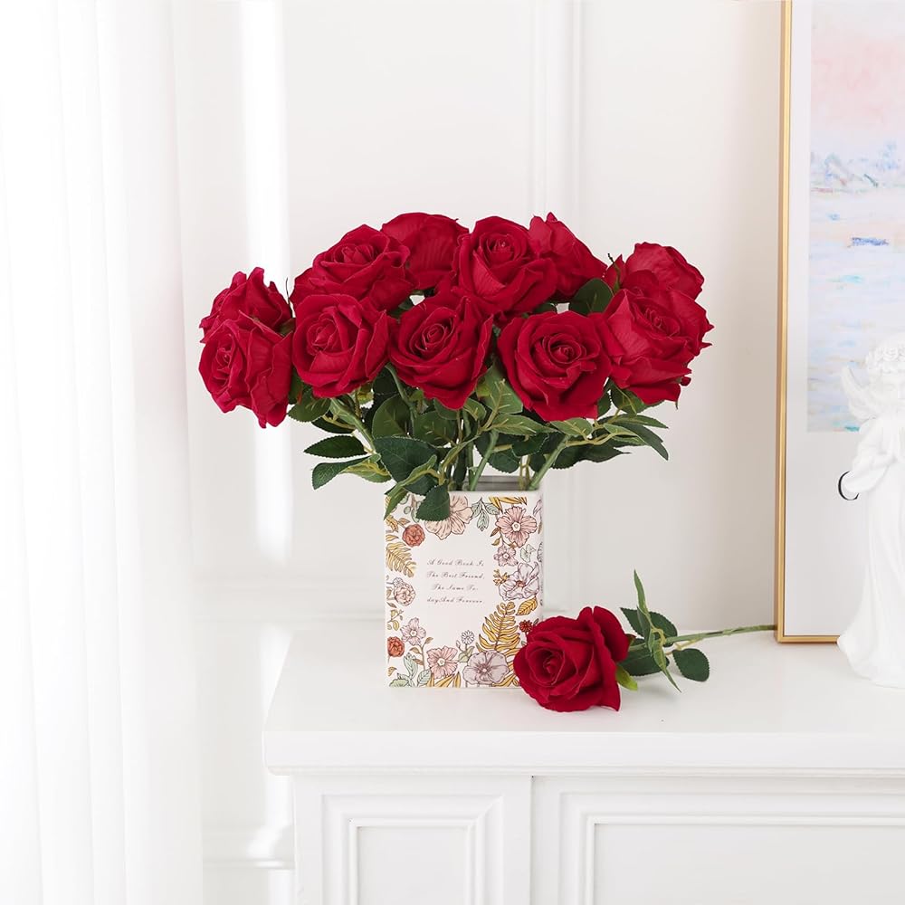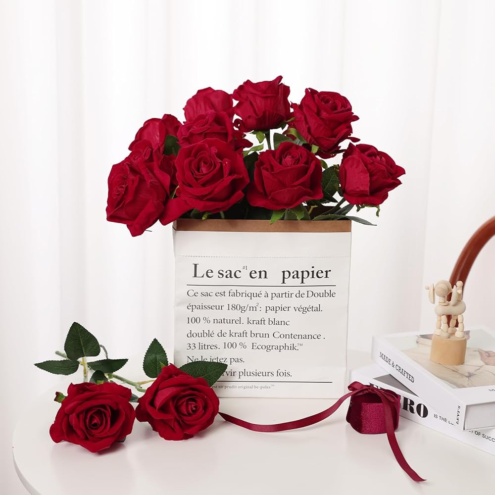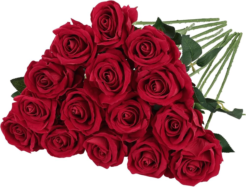 15 قطعة من الورود الاصطناعية من U'Artlines، ورود حريرية ذات سيقان طويلة، باقة ورد مخملية صناعية ذات ملمس حقيقي، زهور وهمية لعيد الحب وعيد الأم وديكور المنزل والزفاف، أحمر