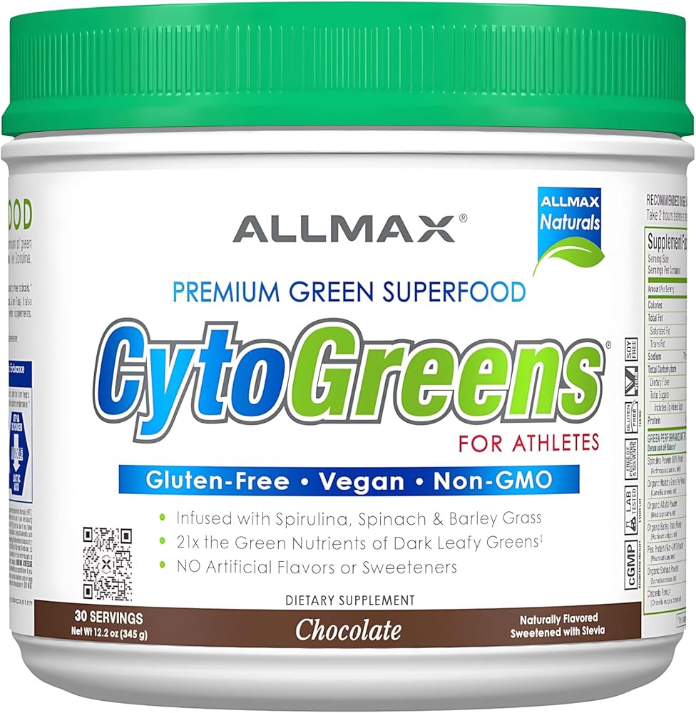 GREEN SUPERFOOD FORMULA - ALLMAX CYTOGREENS is an Ultra-Concentrated Premium Green Superfood Powder. It's loaded with chlorophyll-rich green superfoods like Spirulina, Spinach, Barley Grass, Chlorella & Japanese Matcha Green Tea.