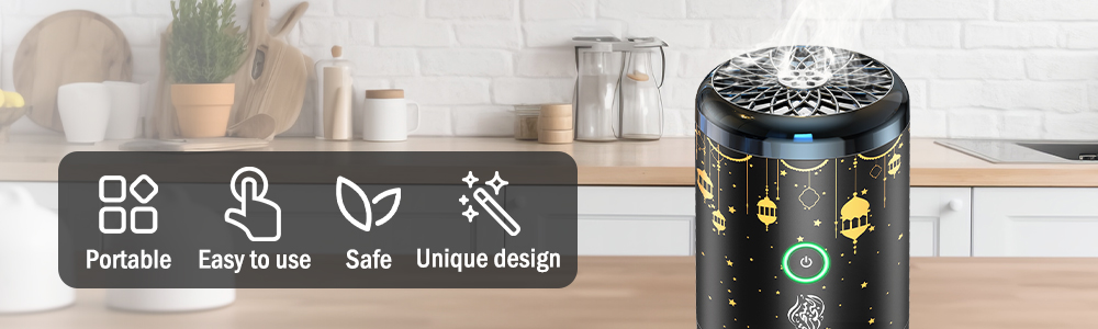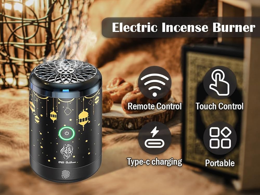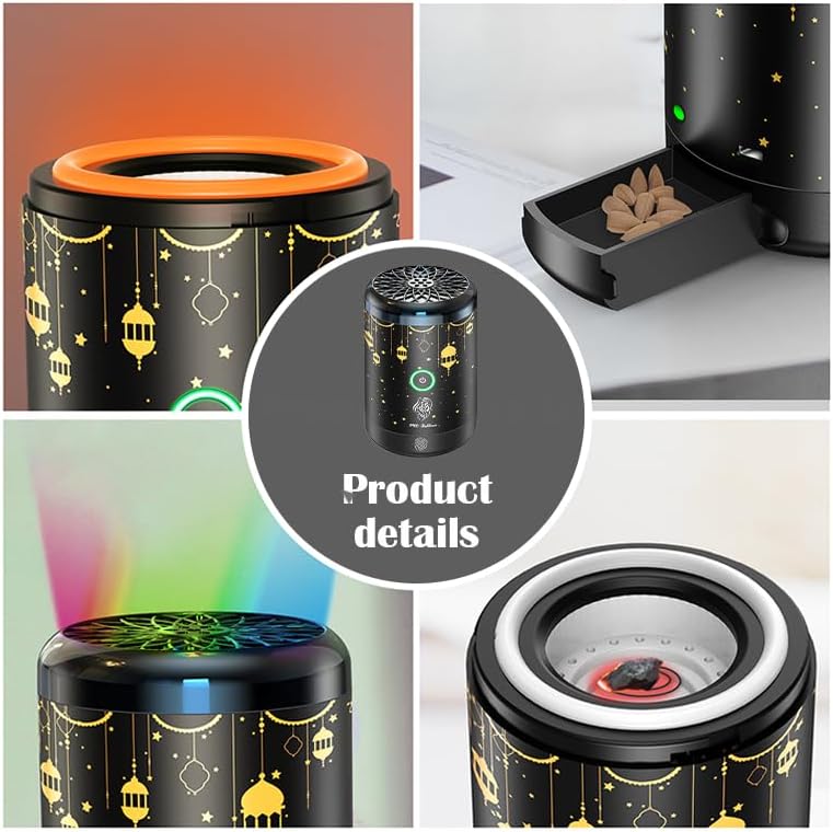✨ مواد عالية الجودة: مظهر مبخرة البخور الكهربائية المحمولة مصنوع من غلاف مطلي بالكهرباء ومواد معدنية عالية الجودة، وهي عصرية وجوية ولها عمر خدمة طويل.