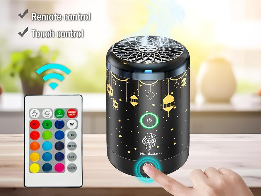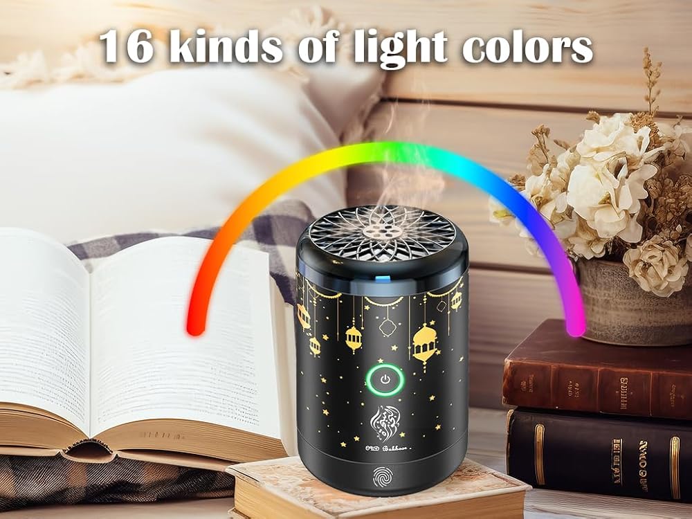 مبخرة كهربائية من Anlising، مبخرة بخور إلكترونية عربية قابلة لإعادة الشحن عبر USB، بخور كهربائي محمول، مبخرة كهربائية للسيارة مع 16 لونًا من مصابيح LED، تستخدم للسيارة والمنزل