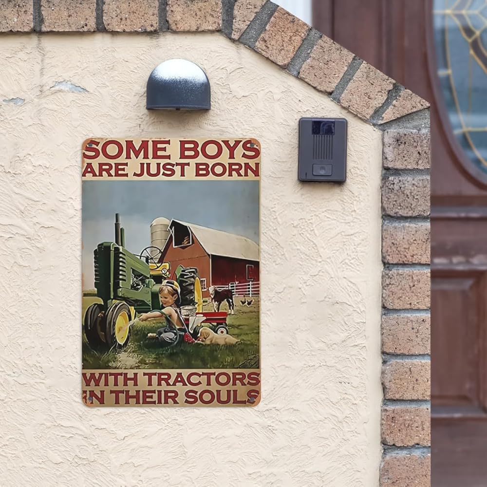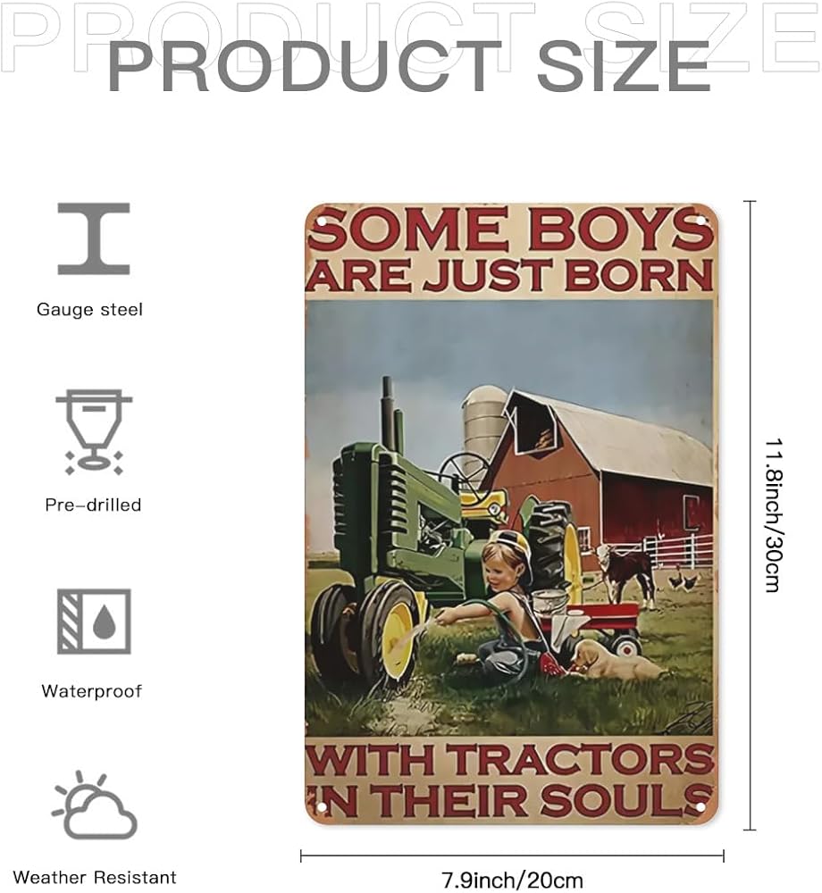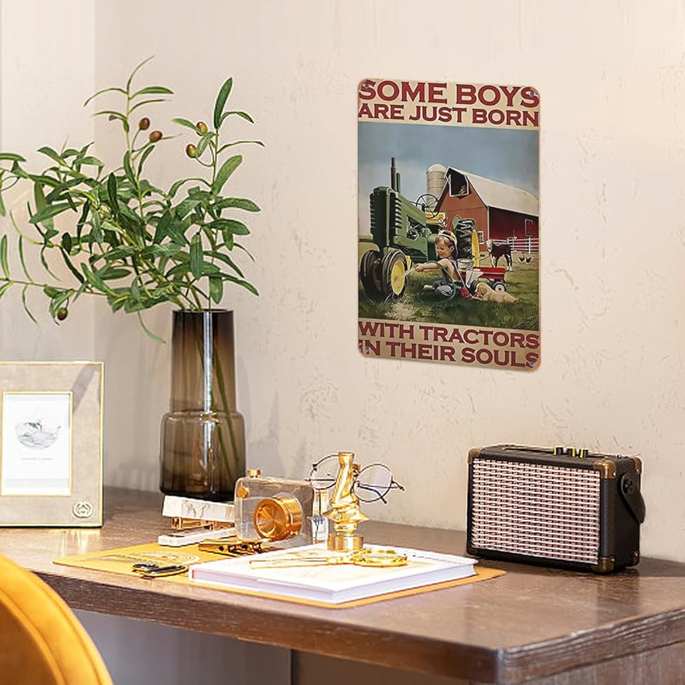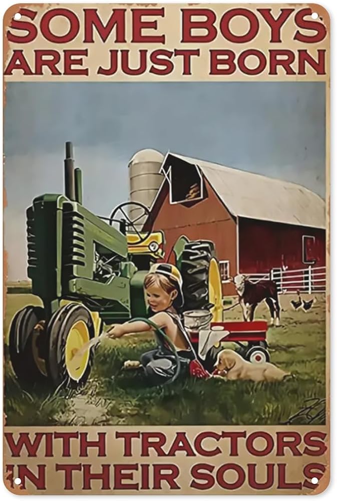 مزرعة الصبي جرار ملصق علامة القصدير المعدنية، بعض الأولاد لديهم جرارات عندما ولدوا، أنيقة الرجعية الفن المرآب حانة رجل الكهف نادي رواية ومثيرة للاهتمام الحمام المرحاض الديكور 12x8 بوصة