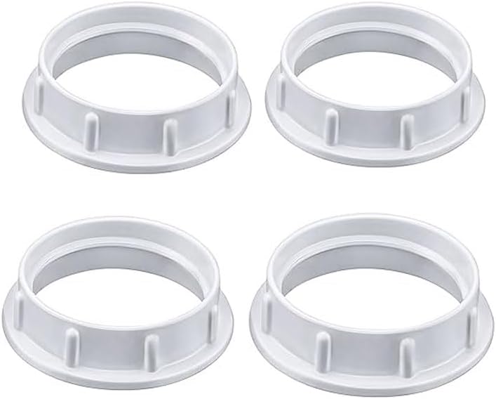 حلقات تظليل مقبس الضوء، حلقة مقبس ملولبة من الألومنيوم لمقابس E26 ذات القاعدة المتوسطة، حلقات الاحتفاظ لظلال المصابيح الزجاجية/تركيبات الإضاءة (4 عبوات من اللون الأبيض، لقطر الخيط 1-1/2 بوصة)