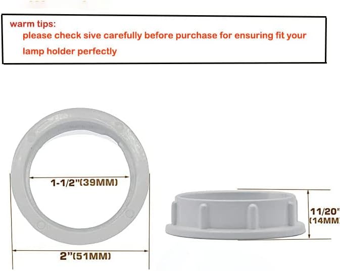 REMINDER-CHECK DIAMETER OF EXISTING THREADED SOCKET before buying.The screw rings ONLY WORK ON threaded socket 1-1/2 inches(39MM).