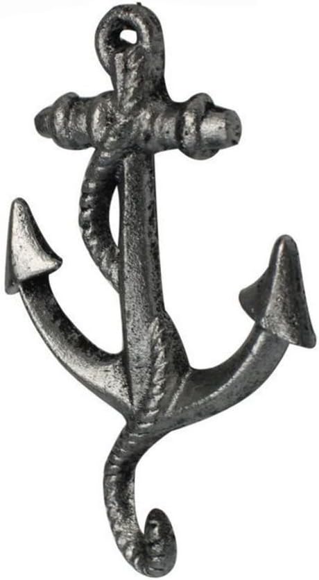This Rustic Silver Cast Iron Anchor Hook 5" is the perfect addition for any nautical themed home. Handcrafted from cast iron, this silver hook allows for easy decorative mounting, ideal for hanging clothes and accessories. Display this decorative hook to add a nautical theme to any room and show those who visit your home your affinity for the nautical sea-faring lifestyle.