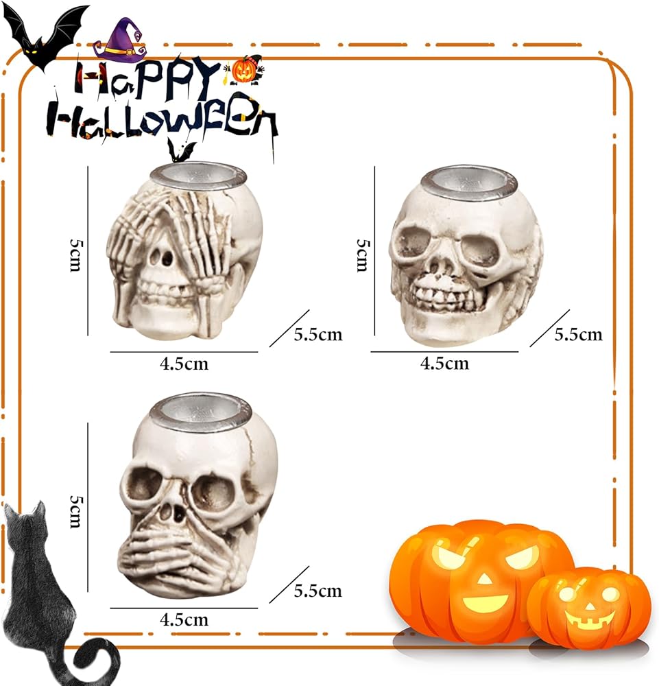 Packaging content: 3 Halloween skull candle holders(candles not included)