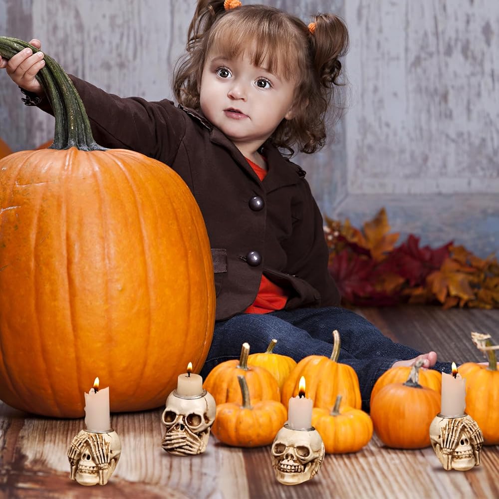 • Suitable size(L*W*H): These Halloween skull candle holders have dimensions of 4.5*5.5*5cm/1.77*2.16*1.96inch, which are very appropriate for placement on window sills, bookshelves, desks, fireplaces, entrances, staircases, etc. They are the perfect decoration for Halloween.