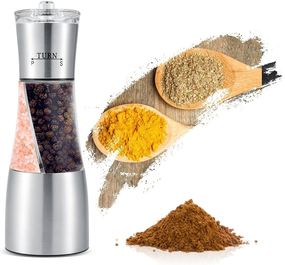 مطحنة فلفل مزدوجة من الفولاذ المقاوم للصدأ 2 في 1 مطحنة ملح وفلفل للمطبخ مطحنة زجاجية للجسم هزازات مطحنة فلفل دوار سيراميك قابل للتعديل