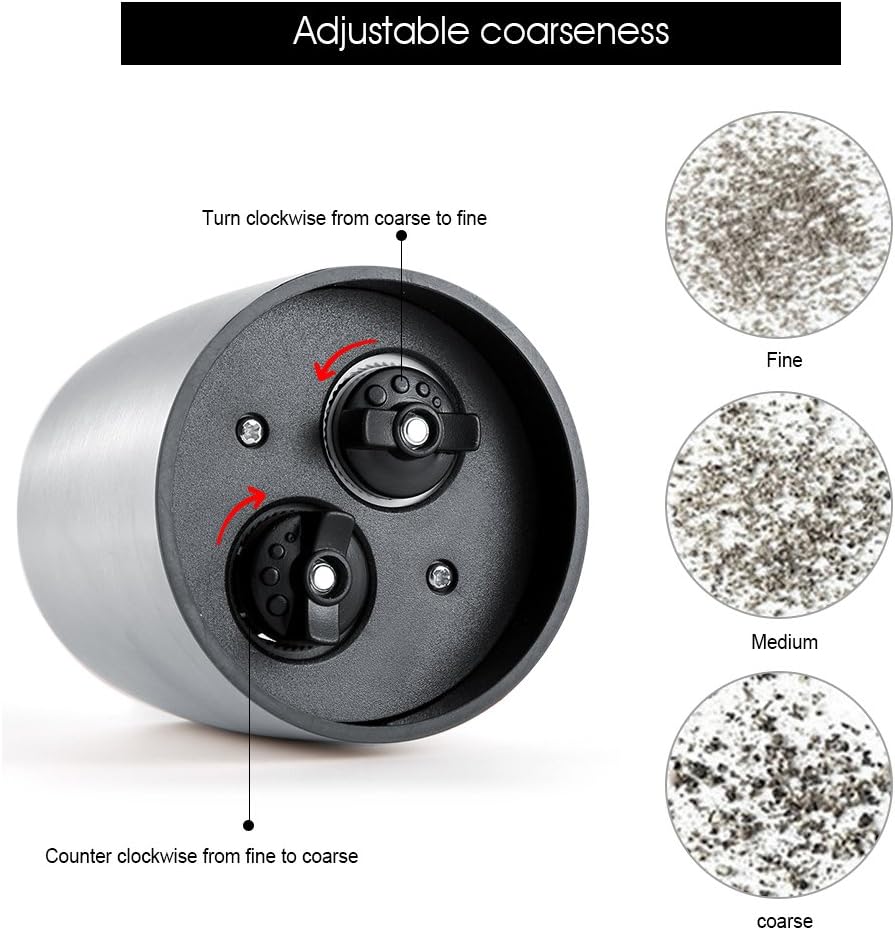 • سهل الاستخدام. ببساطة قم بضبطه وجعله سهل الطحن، سوف تحصل على طحن ناعم أو خشن يمكن تعديله. مزيج مطحنة الملح والفلفل.