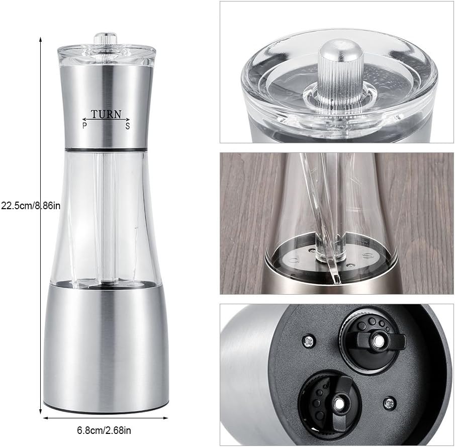 • تصميم مزدوج. تصميم مريح 2 في 1، يطحن الملح والفلفل بنفس المطحنة، ويوفر وقتك وقوتك. شاكر الفلفل الملح.
