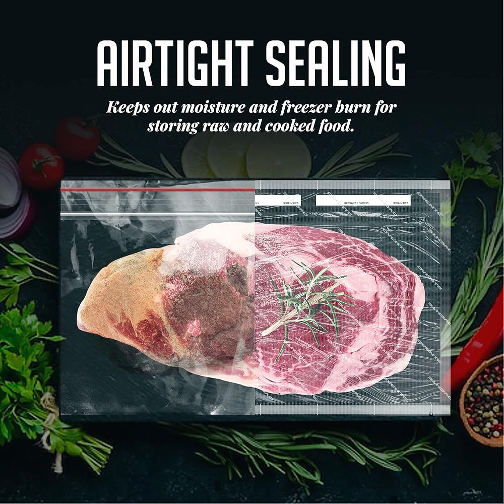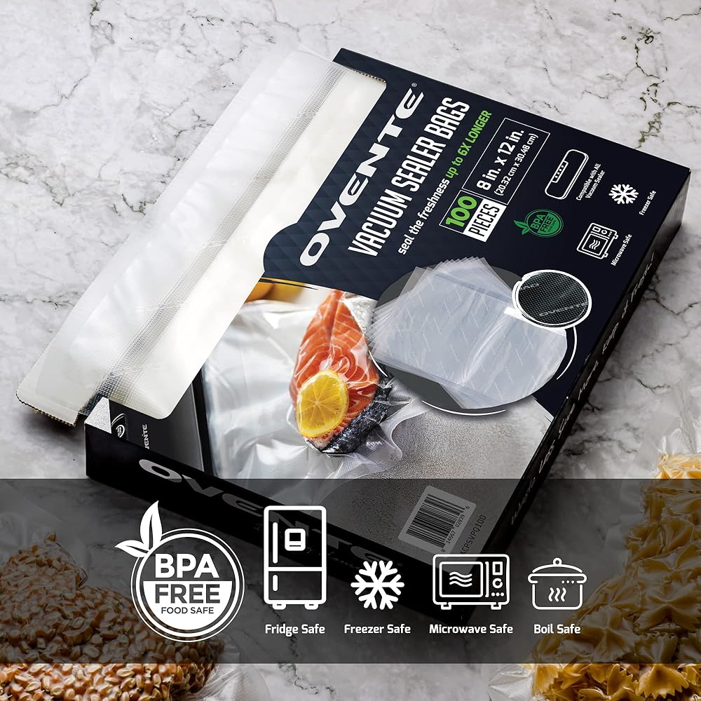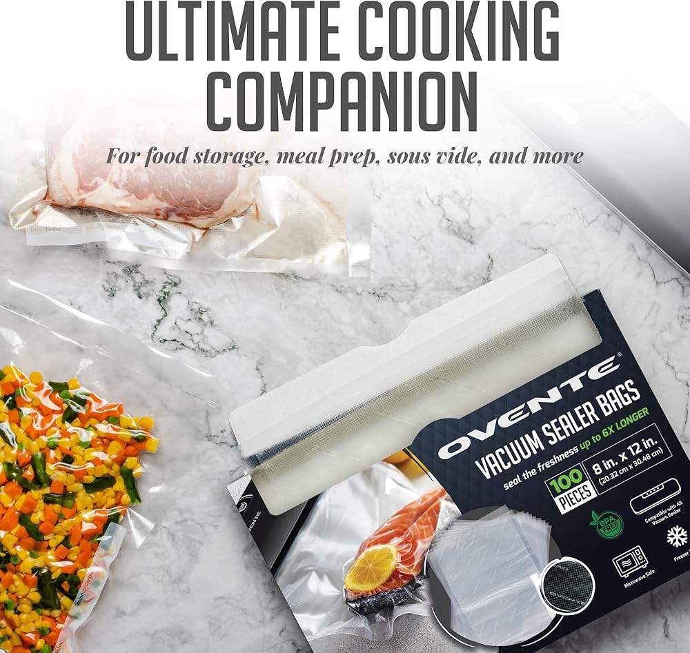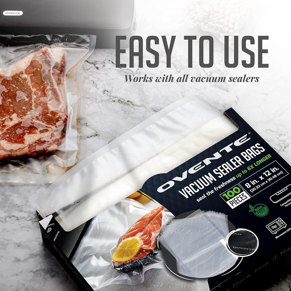 Designed to operate with any vacuum sealer equipment, including the OVENTE Vacuum Sealer. Keep everything, including fish and meat pieces, cookies, crackers, and other snacks and dry goods, in the freezer or refrigerator.