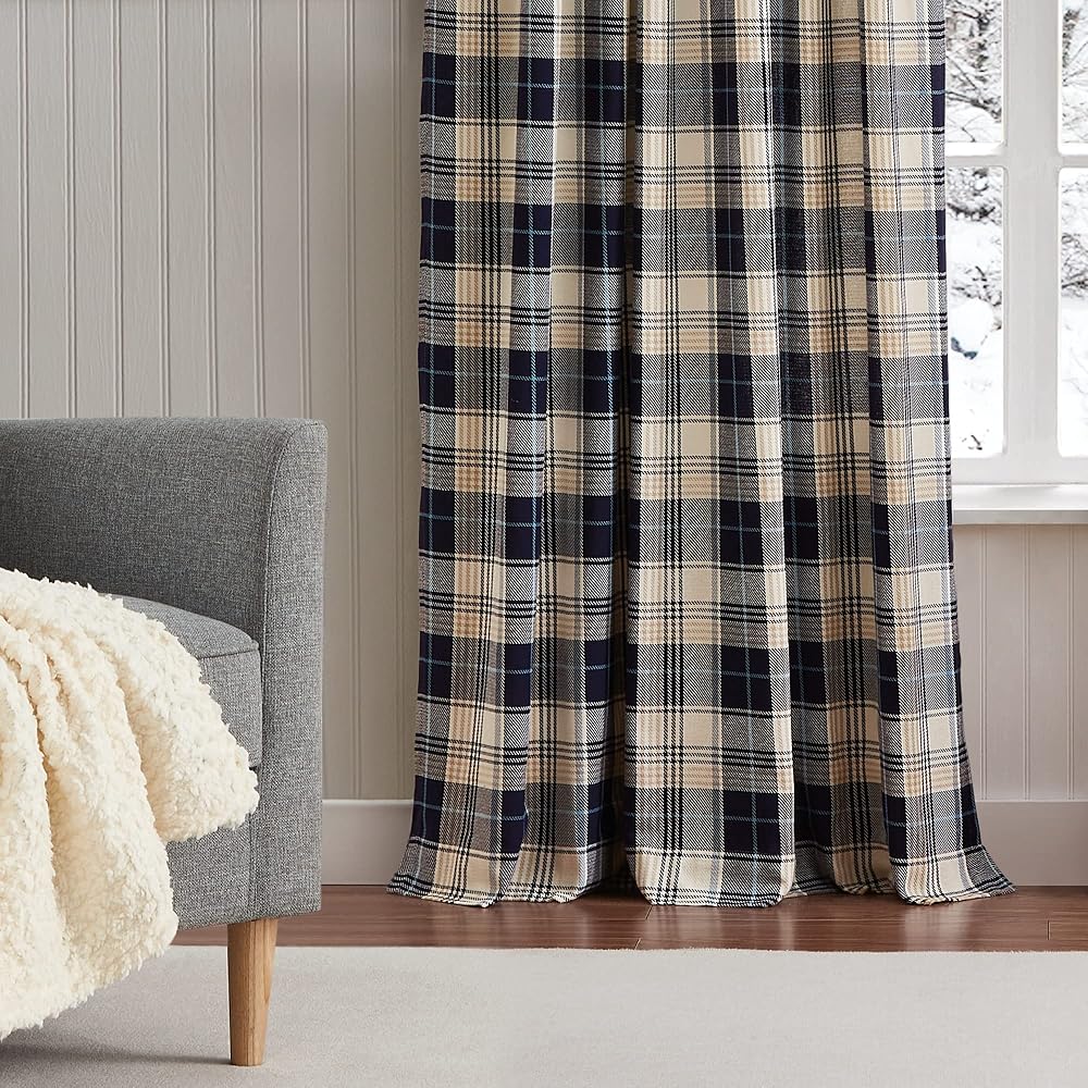 VERSATILE STYLING Easily hang plaid curtain panels in your living room or master bedroom using the rod pocket; Use multiple panels to cover wider windows or add fullness.
