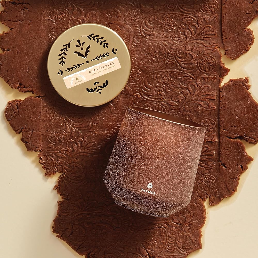 Thymes Gingerbread Large Candle (15 oz): Welcome the spirit of the season with the decorative etched lid and sugar-coated finish of this fragrant candle. A comforting scent to be savored and shared, this single wick candle makes for the perfect gift or holiday home decor piece.