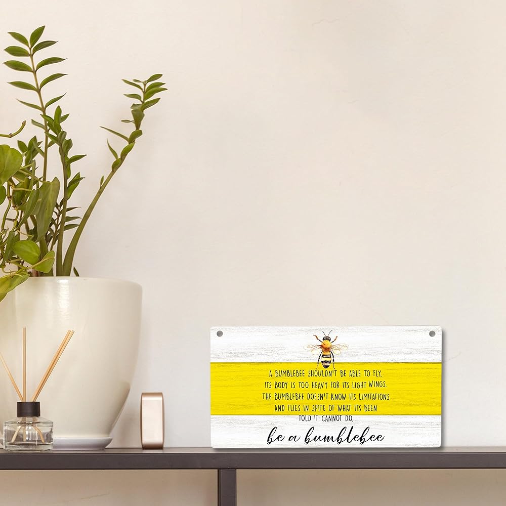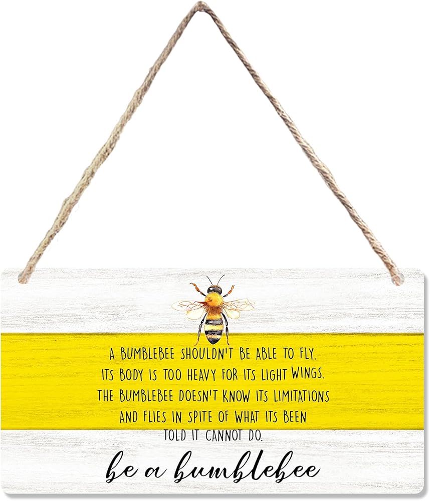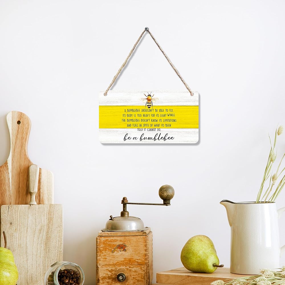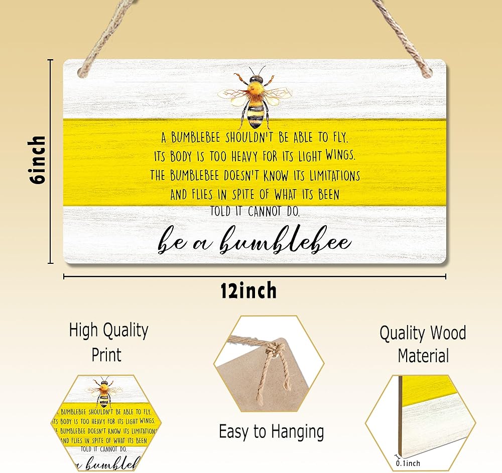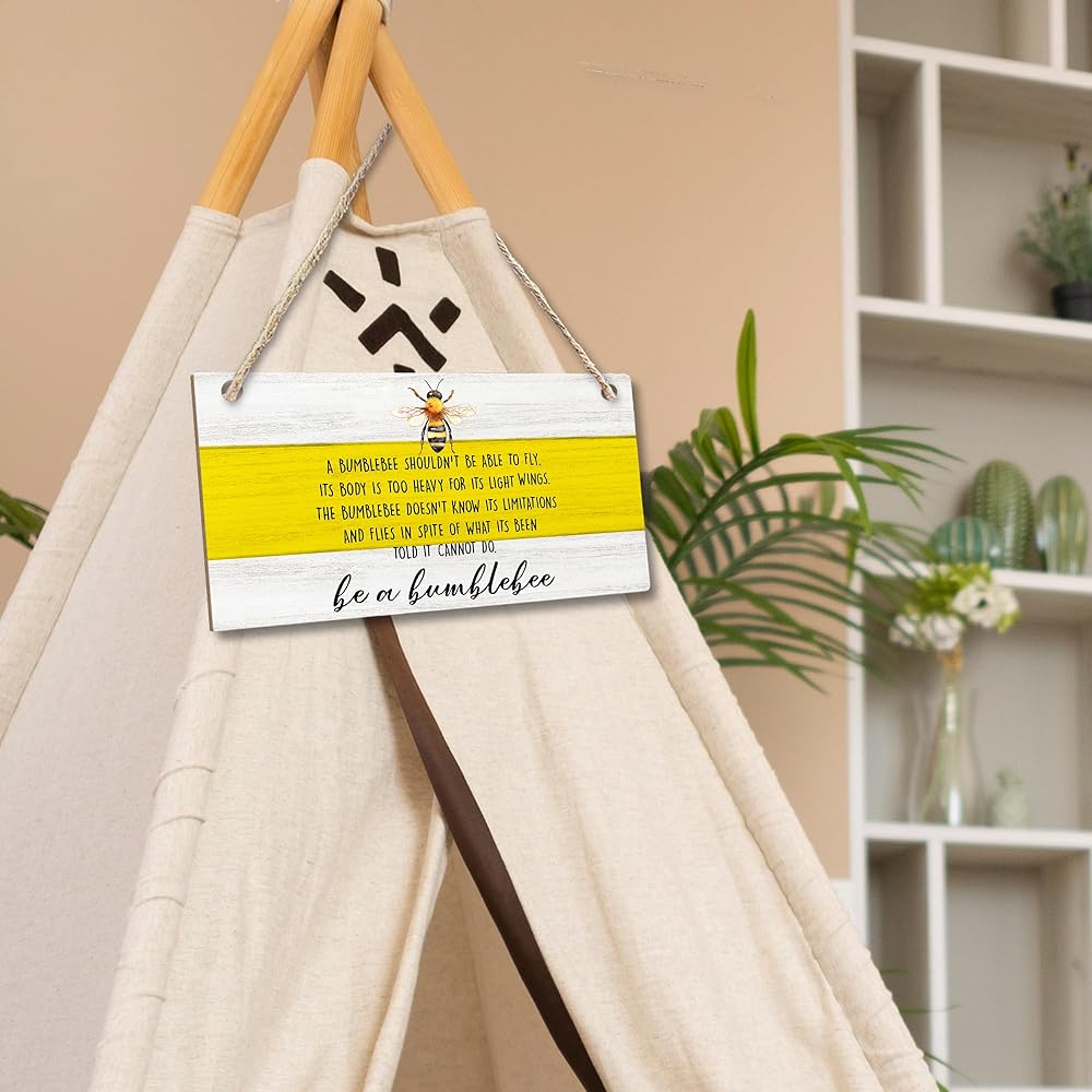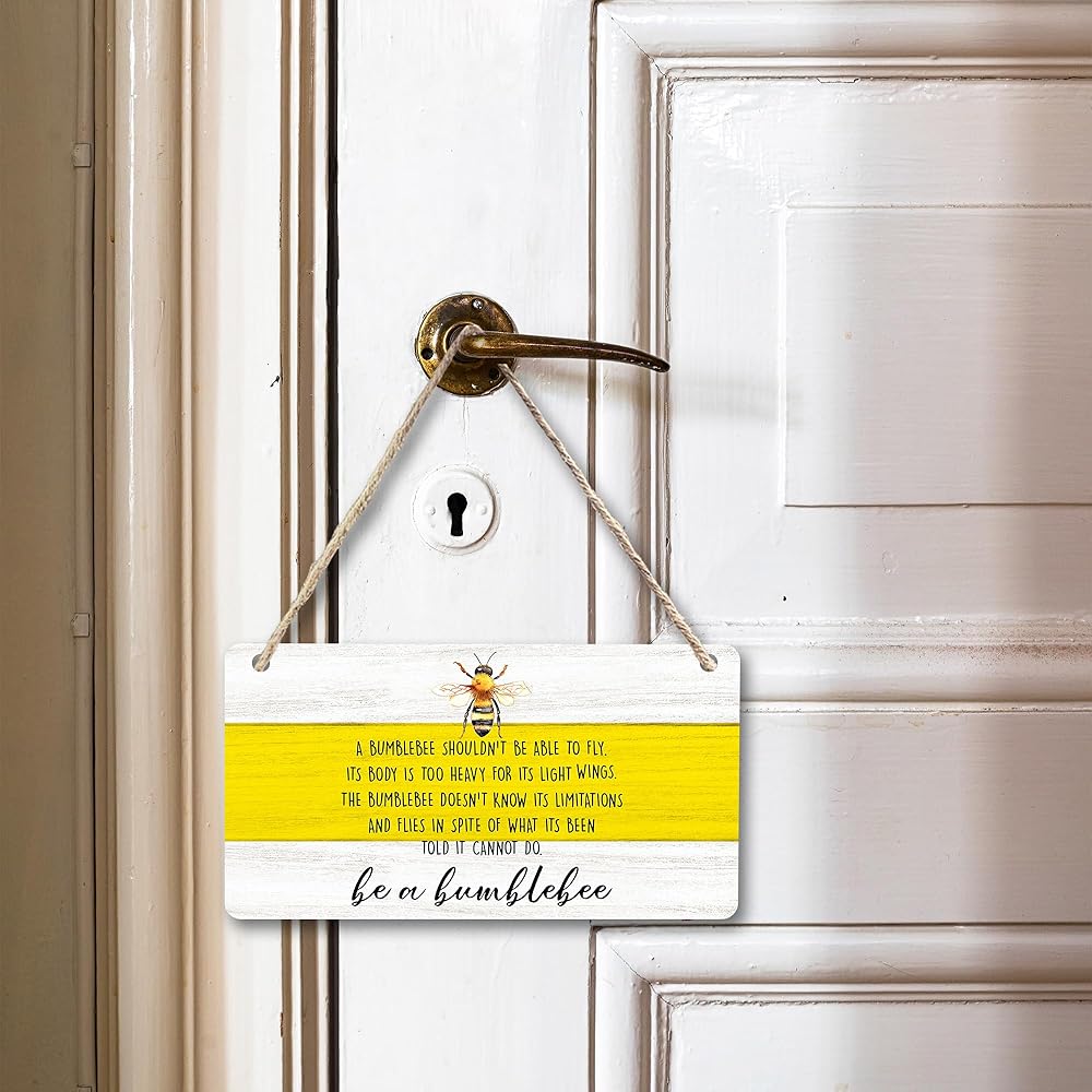 cgbhw ديكور الصيف الإيجابي، ديكور النحلة الطنانة، كن زينة نحلة نحلة خشبية علامة جدار ديكور معلقة للمكتب المنزلي، هدايا النحل التحفيزية للنساء والرجال ديكور باب الباب 12 × 6 بوصة