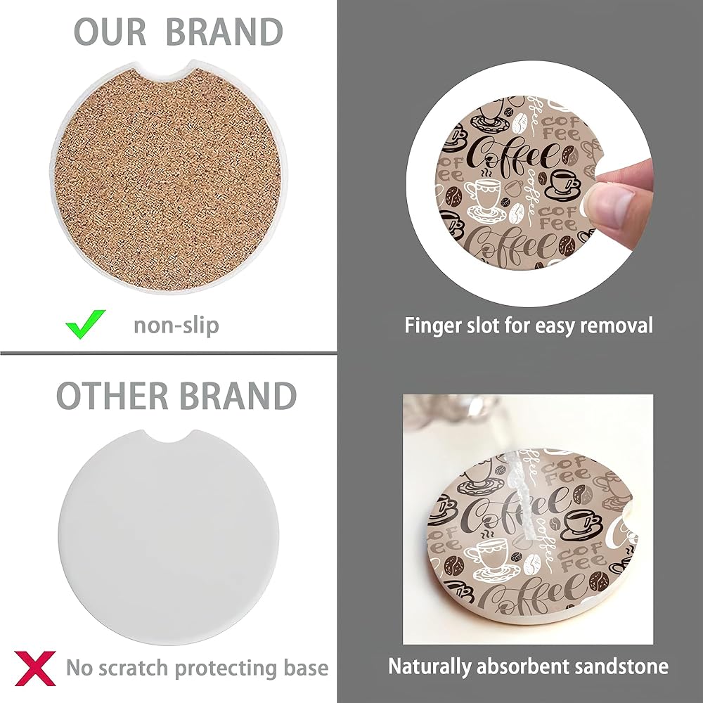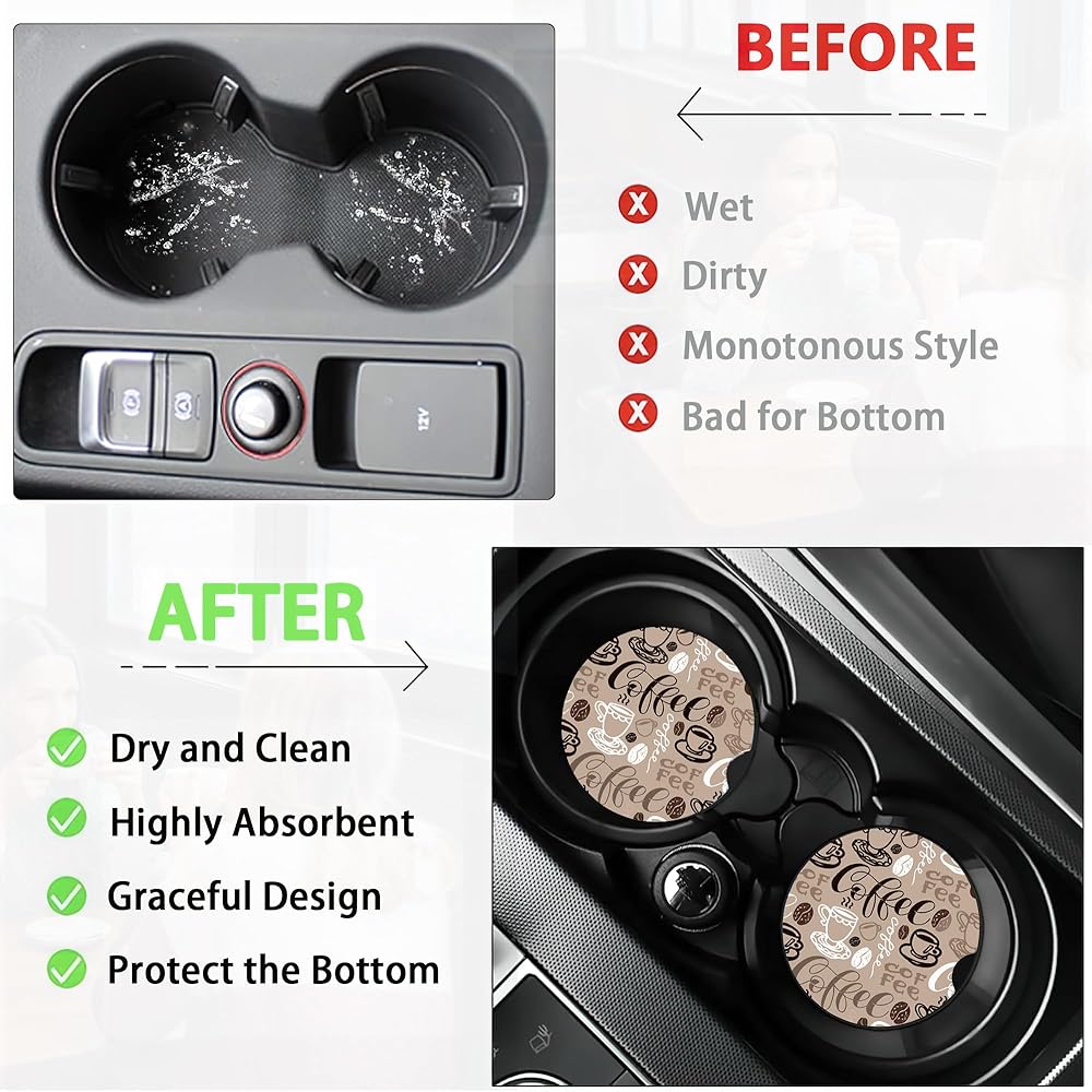 【قواعد أكواب فائقة الامتصاص】قواعد الأكواب الخاصة بنا مصنوعة من حجر سيراميك خاص ماص، تمتص بسهولة قطرات السائل الموجودة على الجزء الخارجي من الكوب، وتحافظ على حامل أكواب سيارتك جافًا ونظيفًا. توفر قواعد الأكواب المصنوعة من السيراميك قدرة امتصاص أكبر من الأكواب الأخرى المصنوعة من الفلين والجلد والورق والكرتون والمطاط.