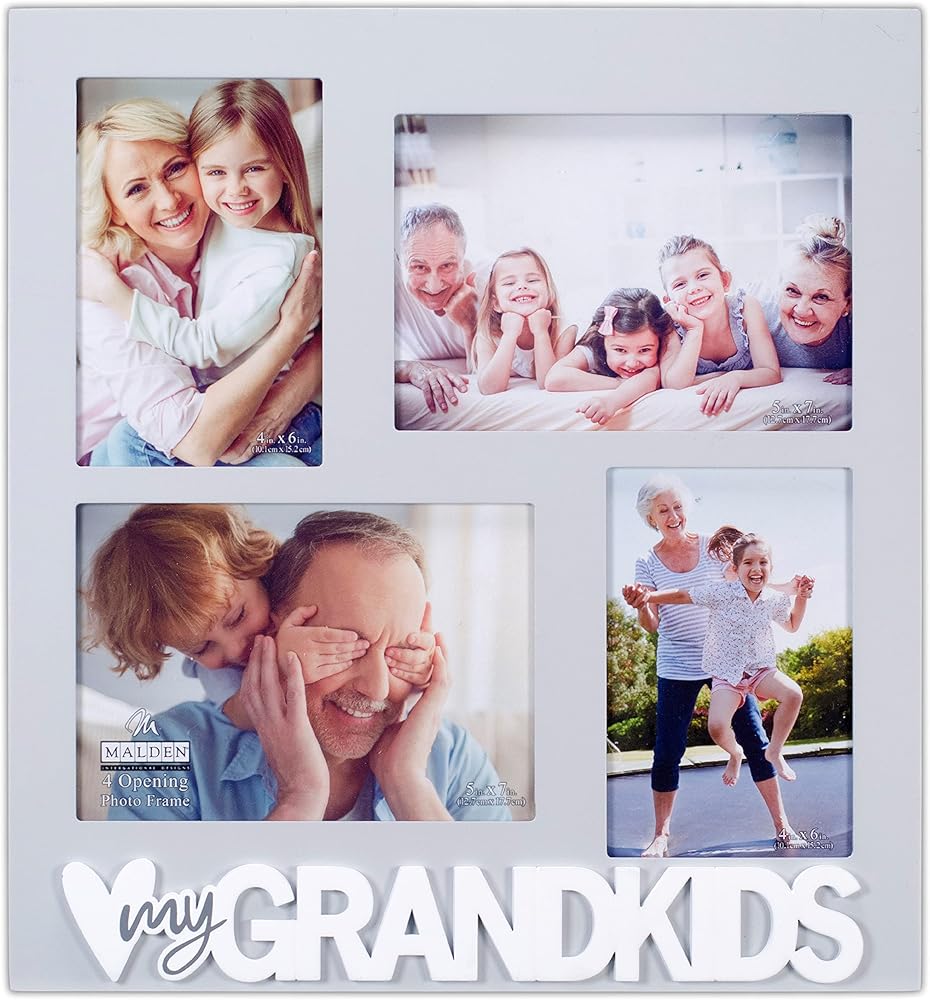 تصميمات Malden International Designs Love My Grandkids 4 إطار صورة جداري مفتوح مع ملحق، رمادي