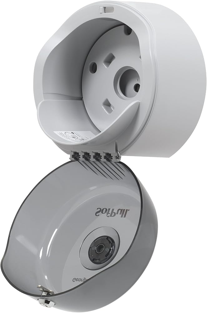 SofPull Tissue Dispensers put a smart new spin on bath tissue – one-sheet-at-a-time dispensing. This high-capacity tissue solution helps reduce costs while improving hygiene. SofPull Tissue meets the EPA Guidelines for Post-Consumer fiber. (Meets or exceeds EPA Comprehensive Procurement Guidelines) and is cerfified by EcoLogo(M). The tissue also has no outer carton or inner wrapping which conserves paper and reduces waste. The translucent cover shows when a roll is ready to be changed and is made of polycarbonate for additional strength. This cover also hinges at the bottom for easy mounting and loading. This dispenser will fit your stall with single, side-by-side, or stacked configurations. SofPull Tissue Dispensers help reduce costs and waste, while improving hygiene...all with just one pull. *Dispenser meets all ADA standards for Accessible Design except for continuous flow. It can be modified for Continuous Flow with ADA Nozzle #56505.