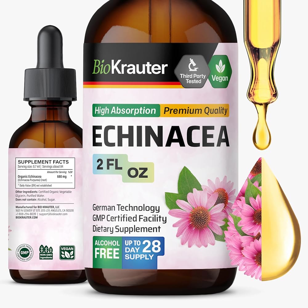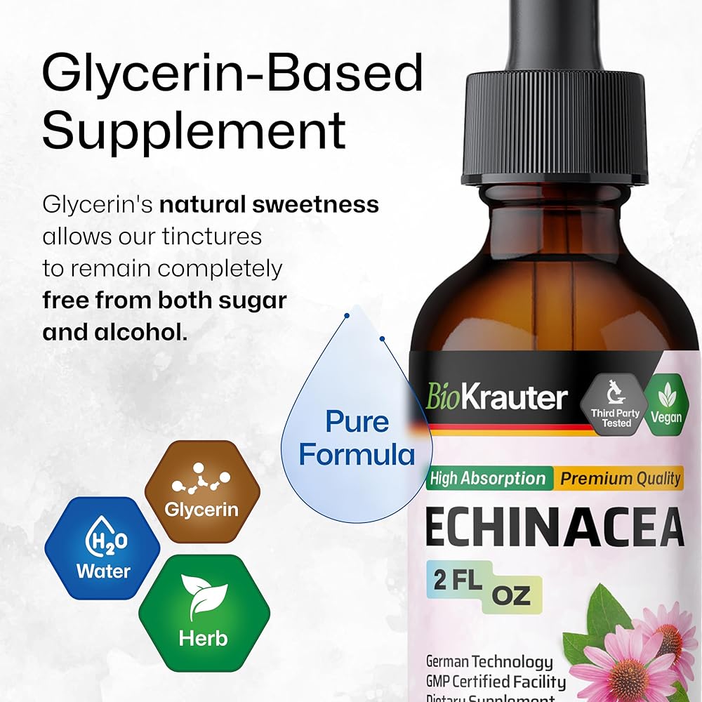 صبغة إشنسا للمناعة: مكمل إشنسا BioKrauter، المصنوع من إشنسا بوربوريا (المعروف باسم إشنسا)، يدعم المناعة عن طريق تعزيز الدفاع المضاد للأكسدة.
