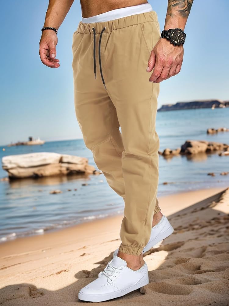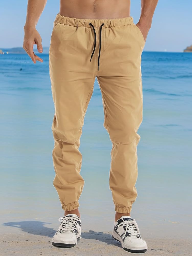 【نسيج متين】بنطال الركض الكاجوال الرجالي الخاص بنا مصنوع من نسيج قطني مضلع صديق للبشرة ومرن للغاية، وهو خفيف الوزن وناعم في الارتداء. ويوفر مرونة كبيرة وراحة رياضية. يمكنك ارتداؤه في أي حالة طقس لمدة عام.