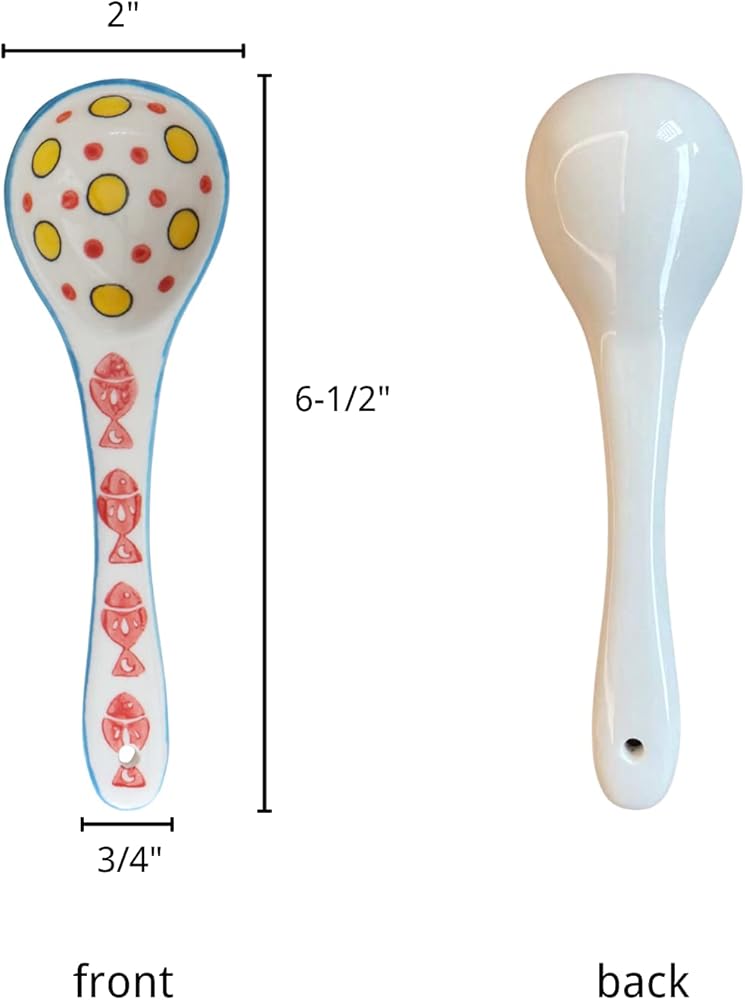 [ملونة ومفيدة] أنماط ملاعق السيراميك جميلة وغريبة الأطوار، ويمكنها إضفاء إشراقة على طاولة المطبخ والمساعدة في تهيئة الجو لوجباتك. الملاعق الخزفية مبهجة وتضيف لمسة رائعة من الألوان إلى طاولتك! تعتبر مجموعات الملاعق أفضل للمرق أو الحساء أو الفو من الملاعق العادية. يمكن أن تعمل كملاعق رامين أو حبوب، ولكنها أيضًا ستكون ملاعق لطيفة لتقديم الغمس أو المقبلات الأخرى.