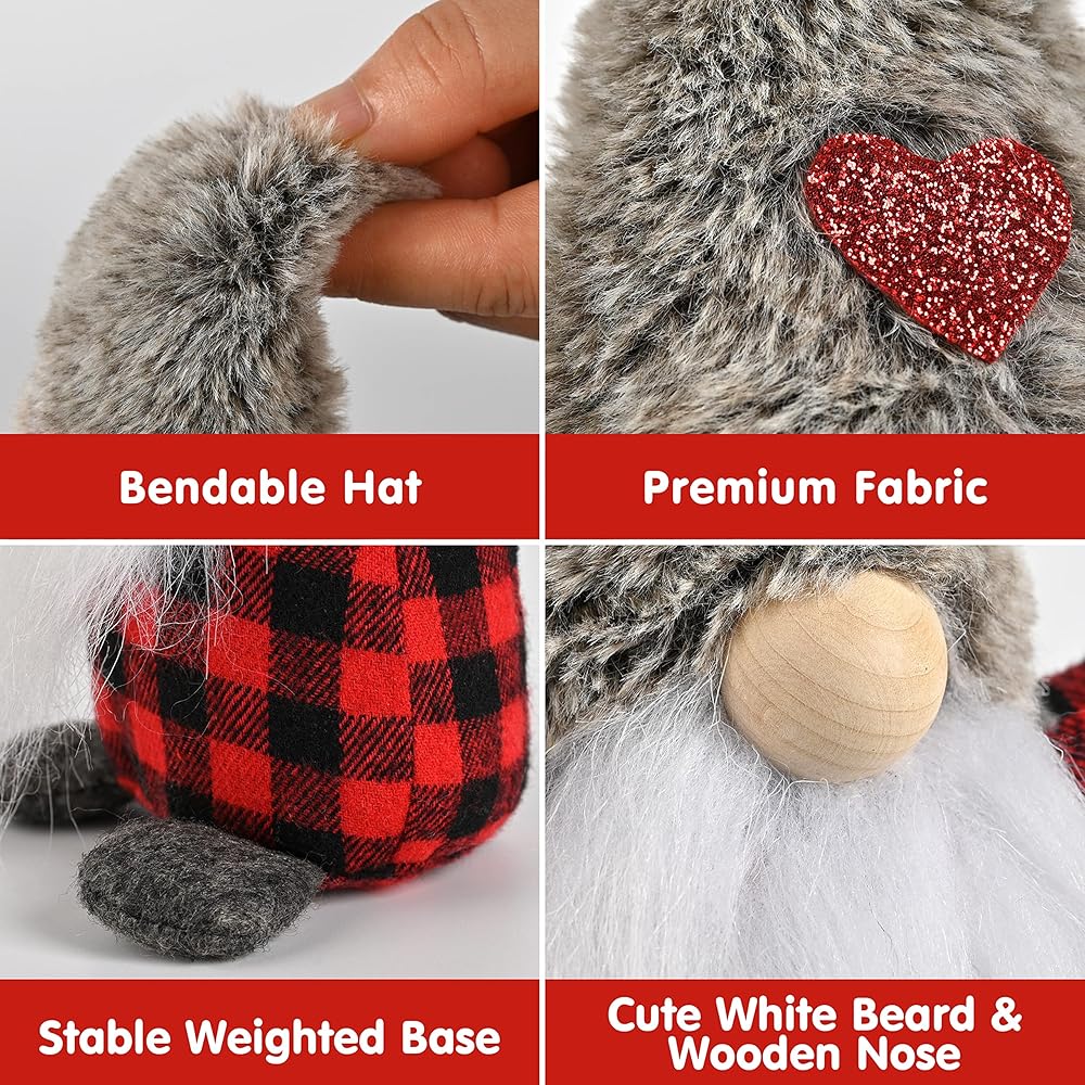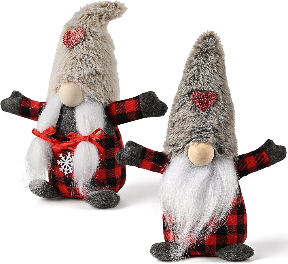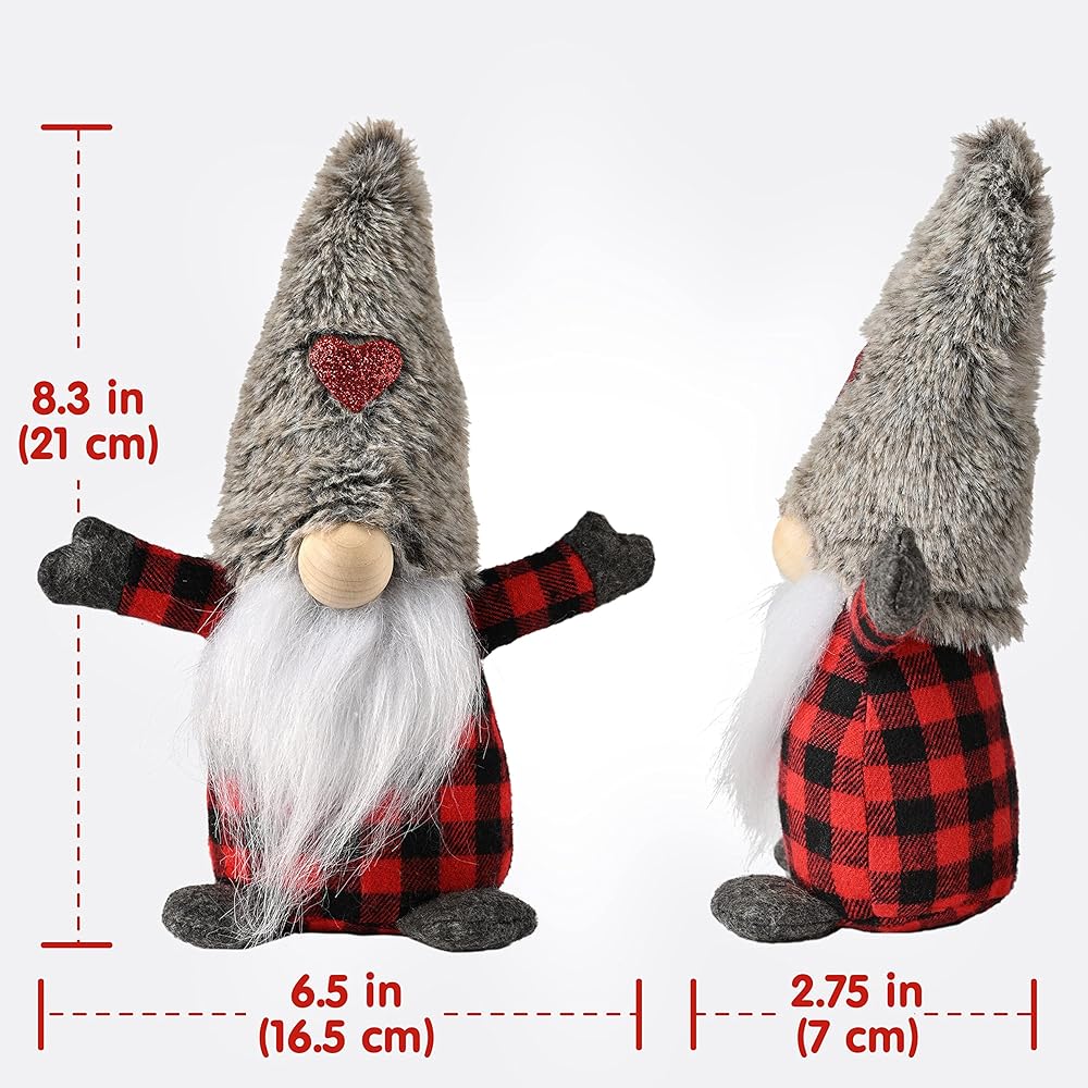 D-FantiX زينة عيد الميلاد التماثيل، 2PCS السويدية اليدوية Tomte عيد الميلاد التماثيل القطيفة الحلي، تماثيل سانتا الاسكندنافية مع الجاموس منقوشة، قزم دمية عيد الميلاد الجدول ديكورات المنزل هدية
