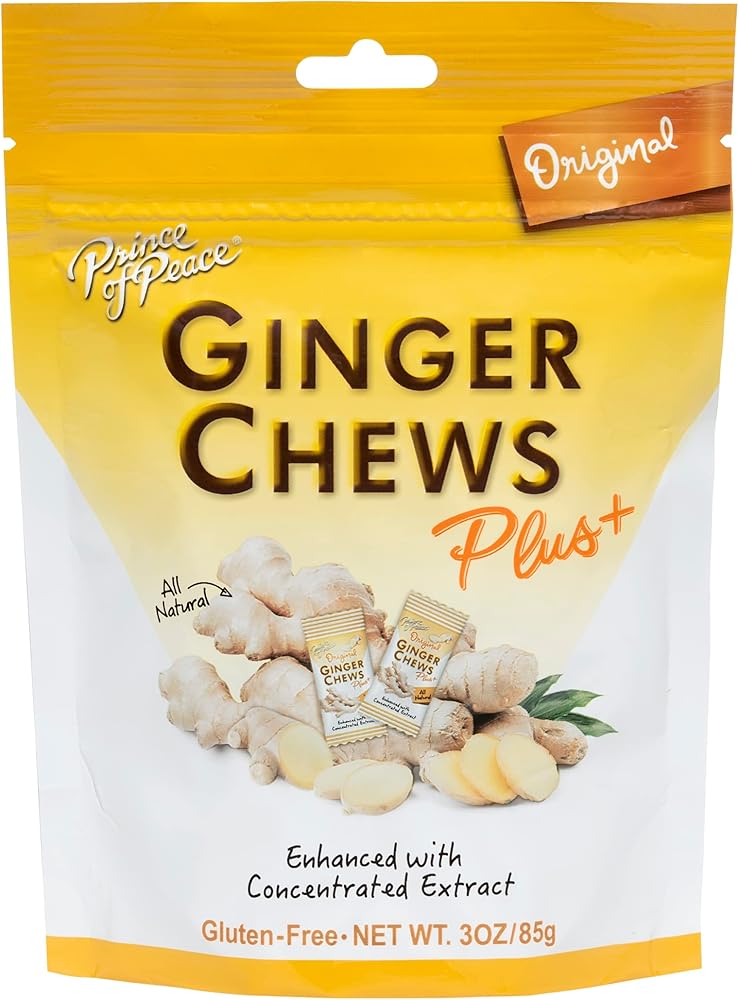 سريع المفعول. يقدم مضغ الزنجبيل من أمير السلام راحة سريعة المفعول من دوار الحركة وما قبل الولادة.