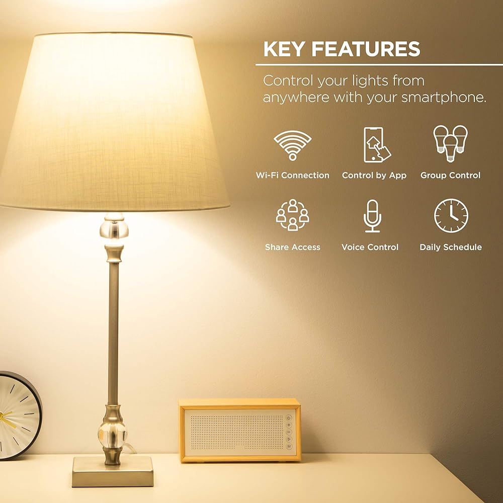 - لا يلزم وجود محور: شبكة Wi-Fi مدمجة في المصباح.