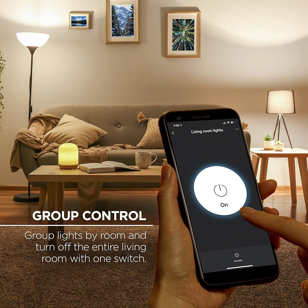 - قم بتجميع المصابيح حسب الغرفة أو التركيب لسهولة التشغيل من خلال التطبيق أو الصوت باستخدام Google Assistant أو Microsoft Cortana.