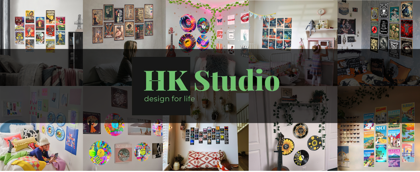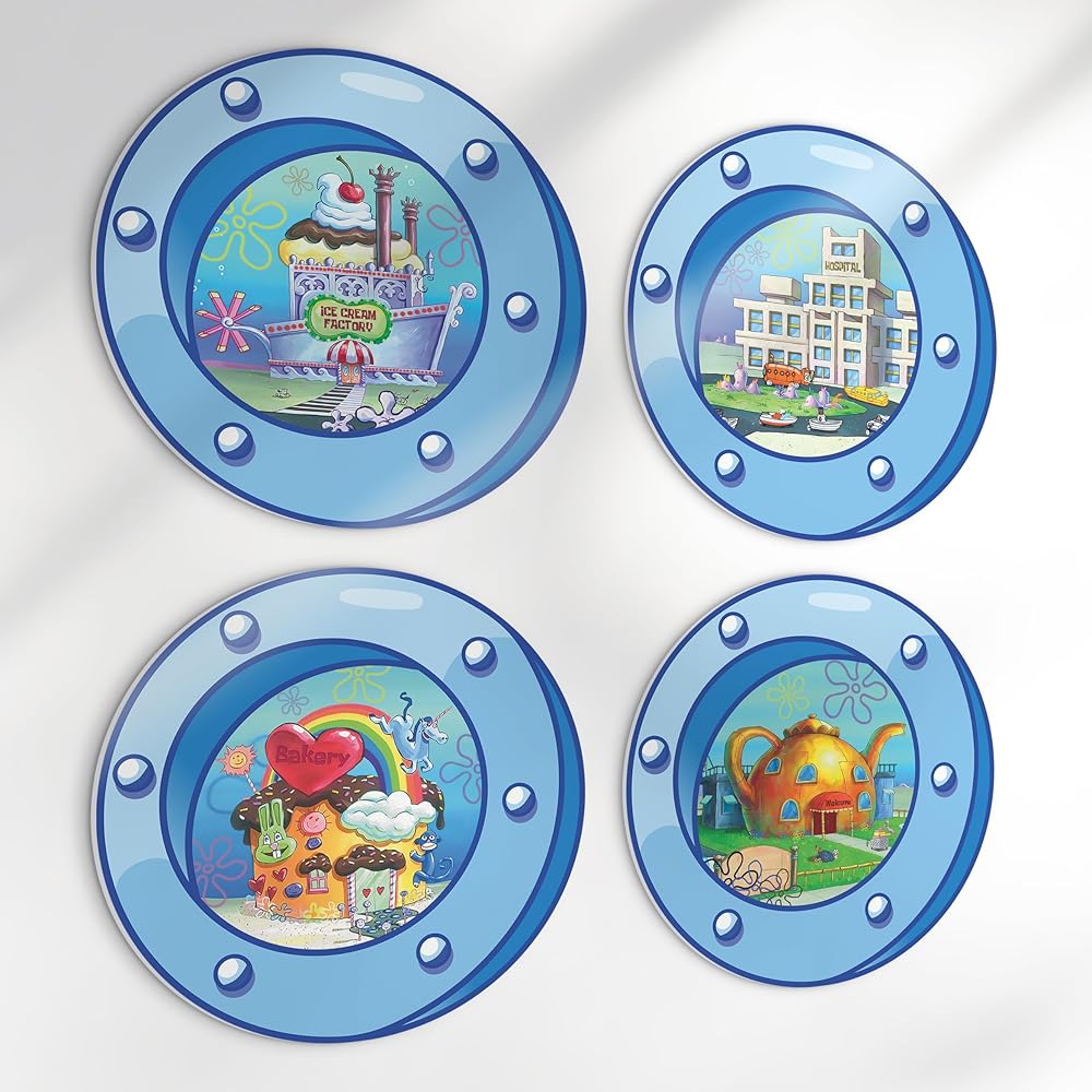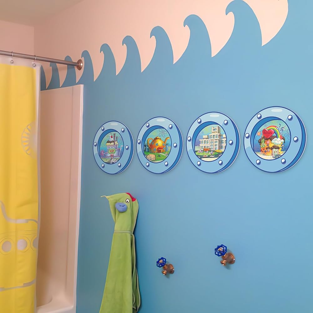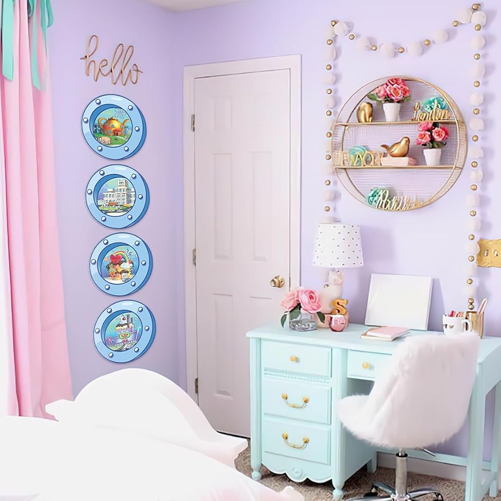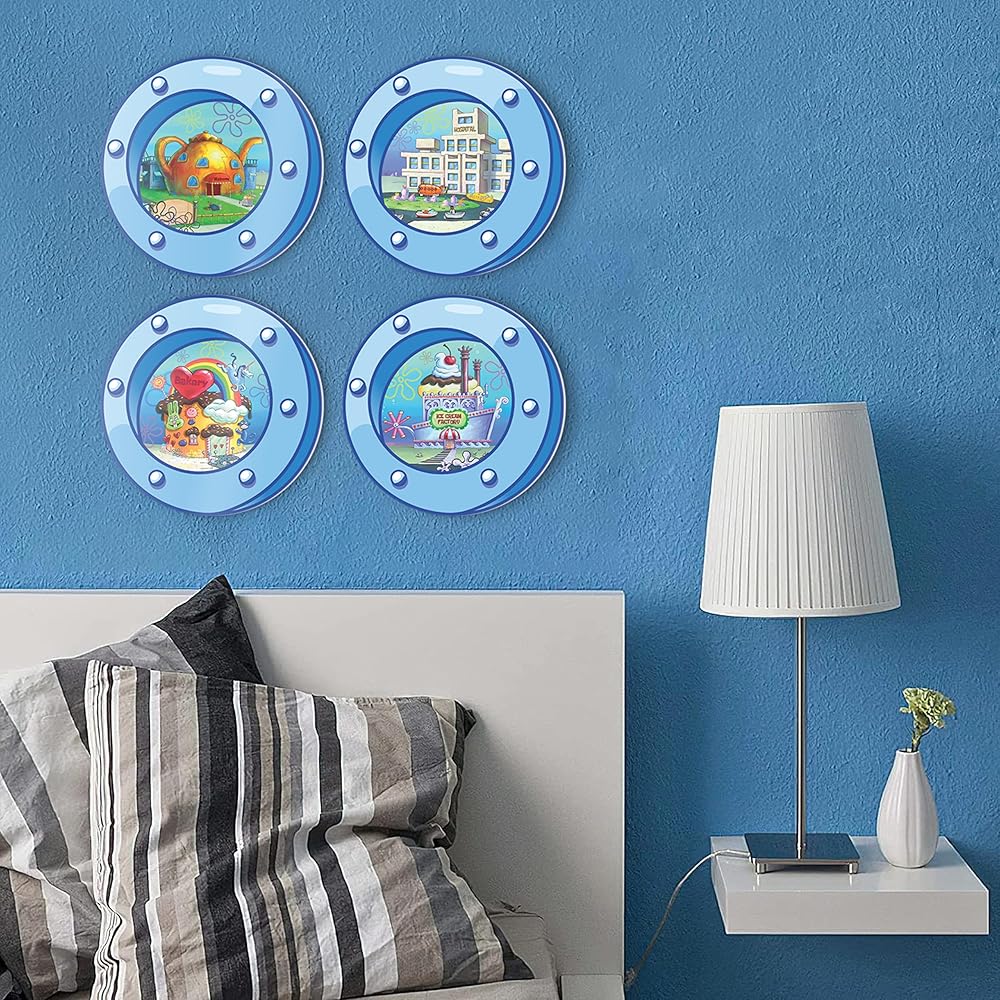 HK Studio مضحك المحيط الكوة ديكور غرفة باردة - مشهد الكرتون ديكور غرفة Y2K للنوم، غرفة نوم في سن المراهقة 12 "حزمة 4