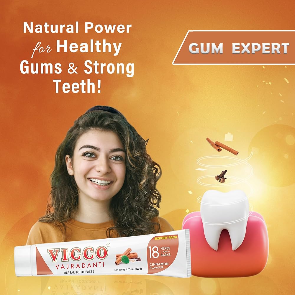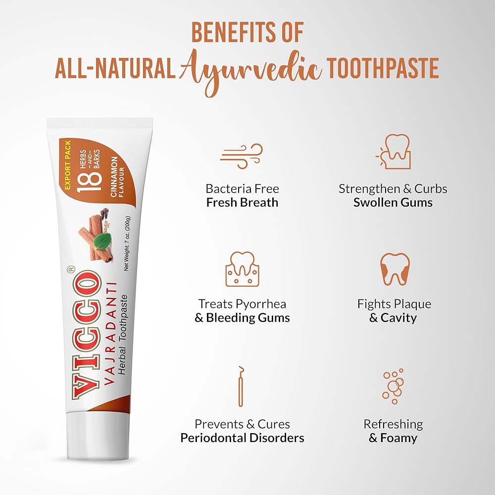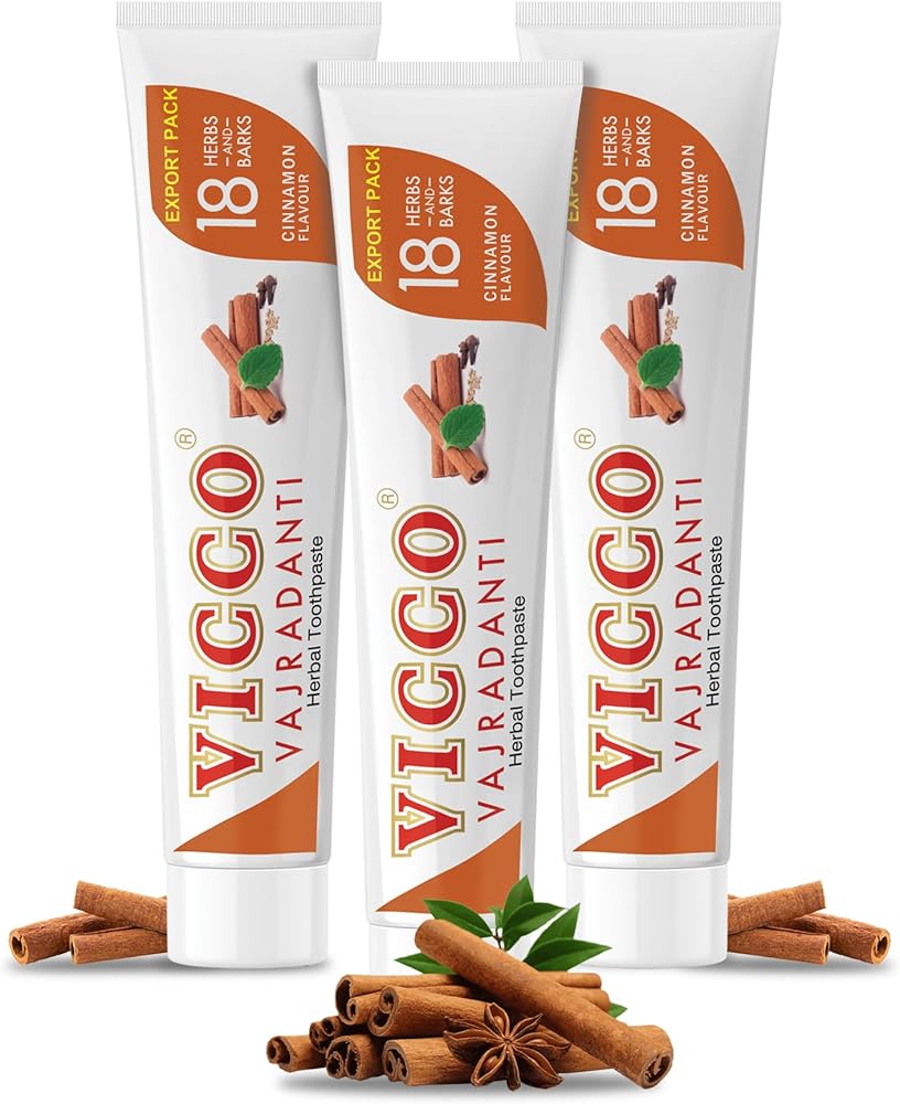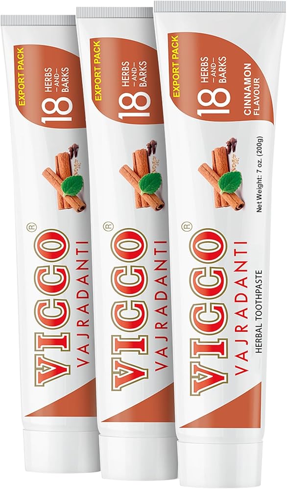 معجون أسنان فيكو فاجرادانتي العشبي بنكهة القرفة - قابض طبيعي ومسكن| يتكون من 18 عشبة، طبيعية 100%، نباتية ولم يتم الإساءة إلى الحيوانات لتصنيعها (عبوة من 3 × 7 أونصة)