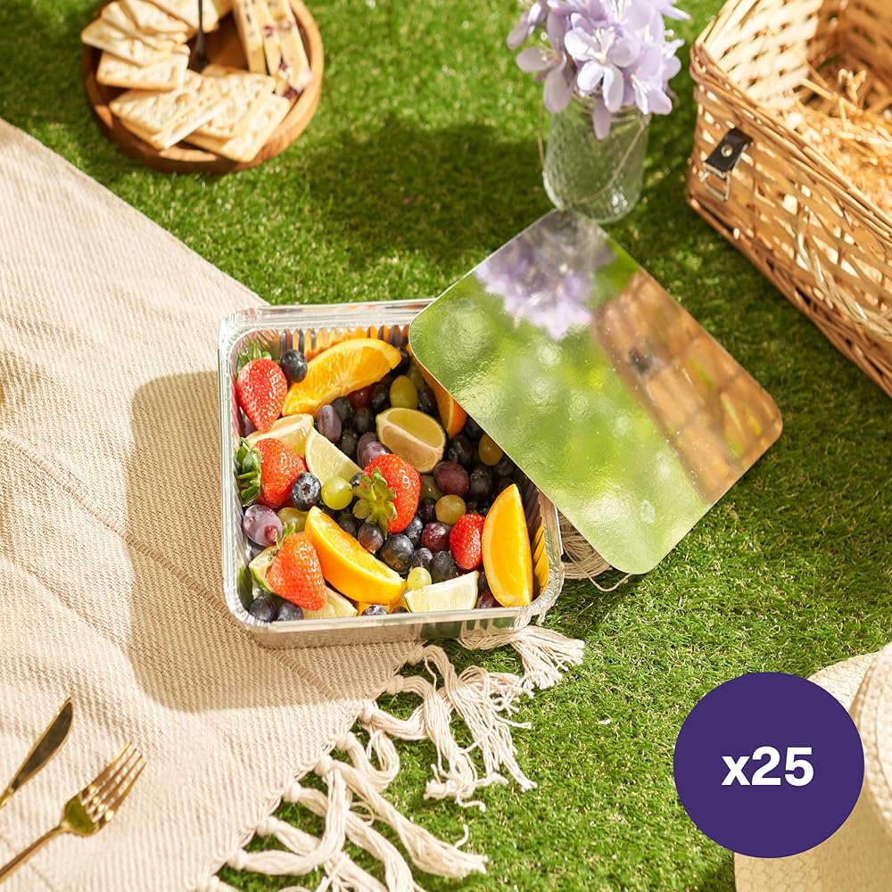 • Great Value Pack: With our value pack, you'll receive 25 square aluminum foil pans and 25 aluminum foil lids, giving you plenty to tackle all your cooking and serving needs. Each pan measures approximately 9 inches in length and width, and 1 inch in height.