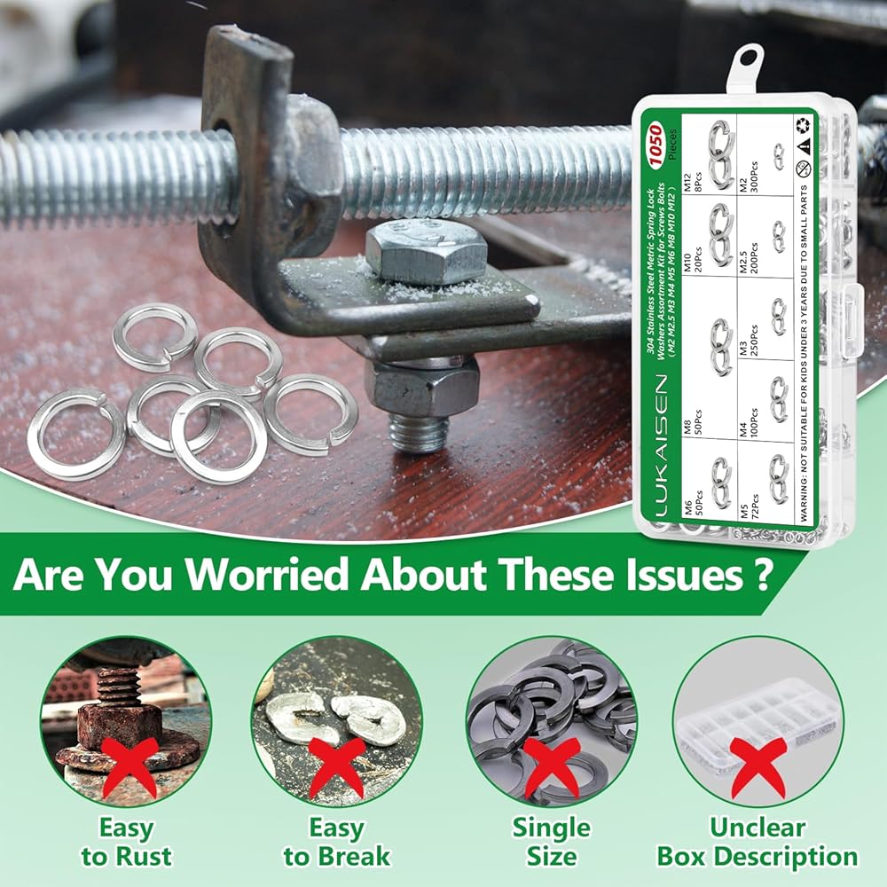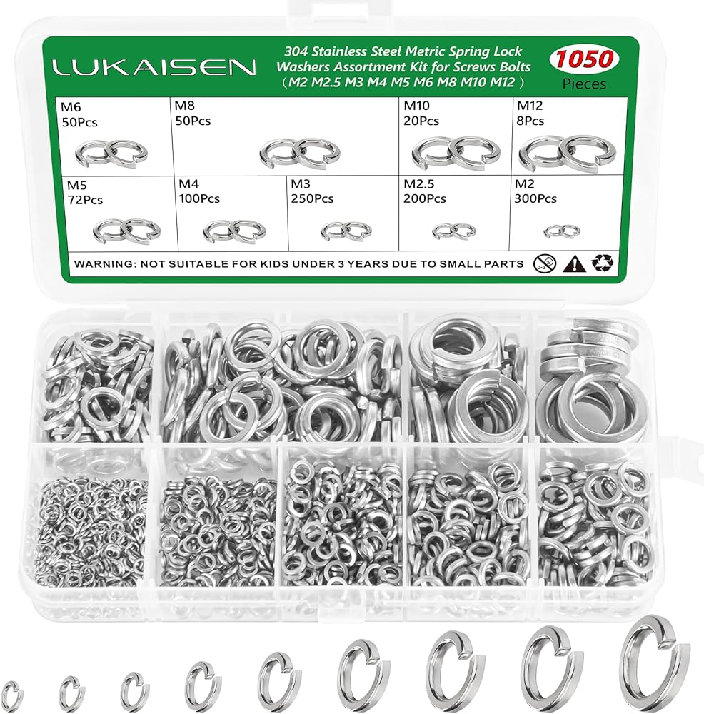 Why Choose LUKAISEN 1050Pcs 304 Stainless Steel Spring Lock Washers Assortment Kit?