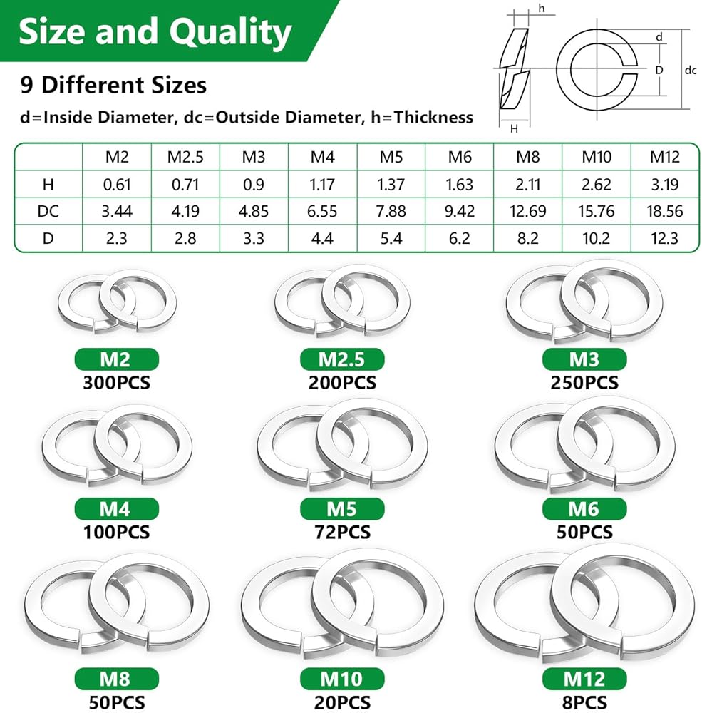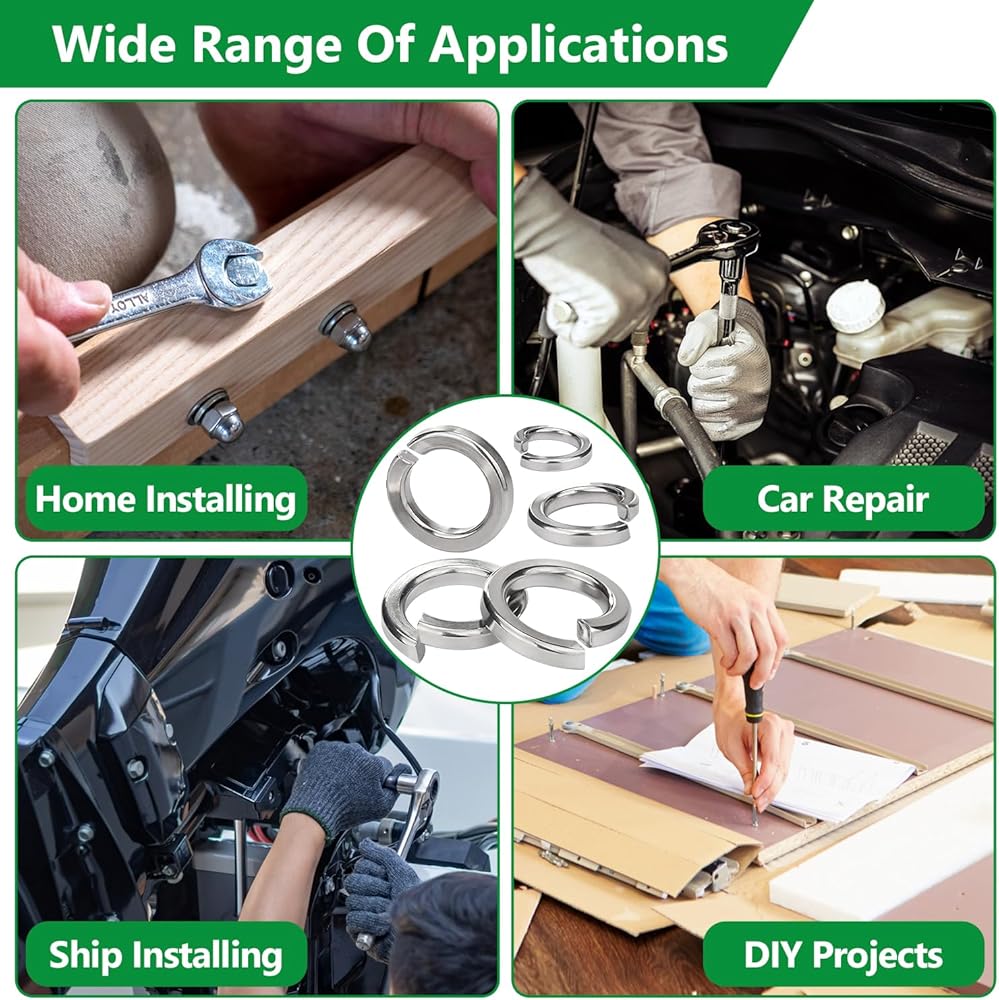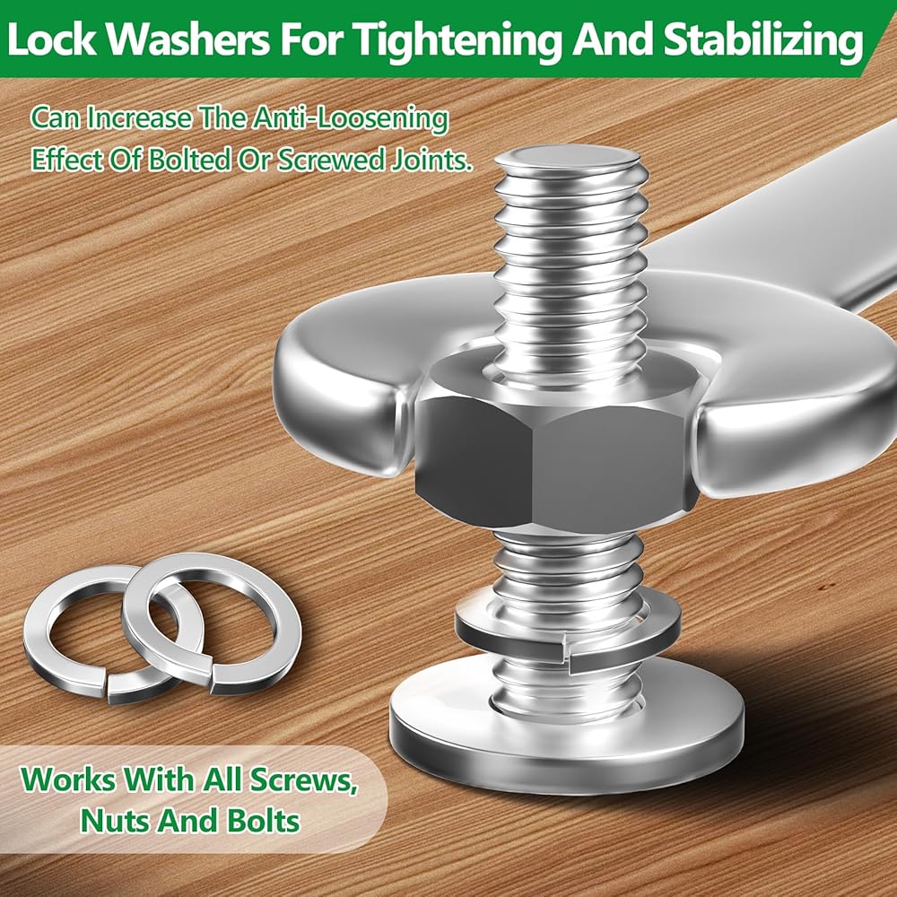-Optimal Surface Area: Each stainless steel lock washer easily deflects screw or bolt loads, distributing weight evenly and ensuring a secure fit. These screw and bolt washers are perfect for use at home or in the workshop.