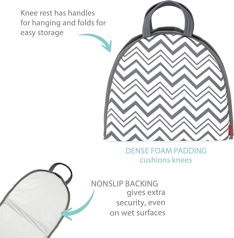 • مصممة بنمط شيفرون بسيط. يبدو اللون المحايد لمسند الركبة القابل للطي رائعًا في ديكور أي حمام.