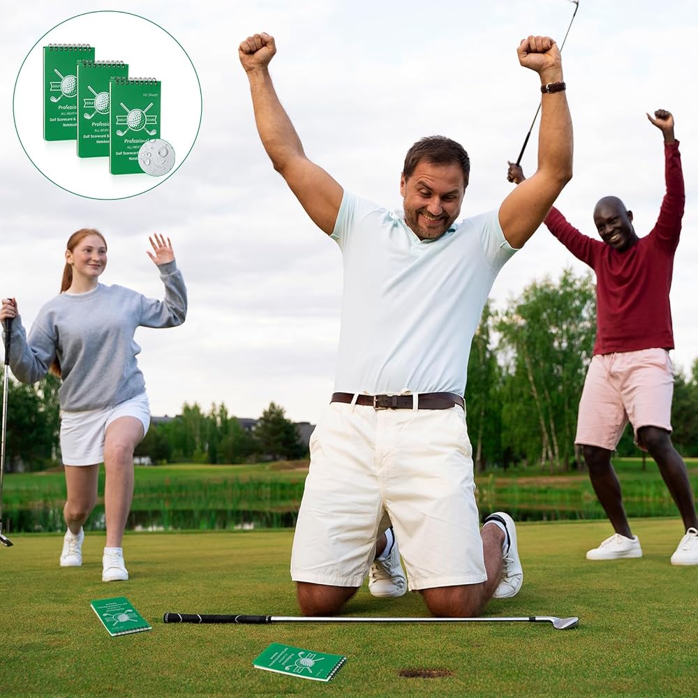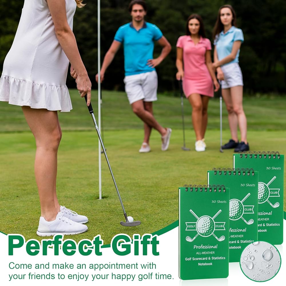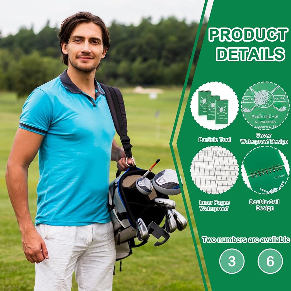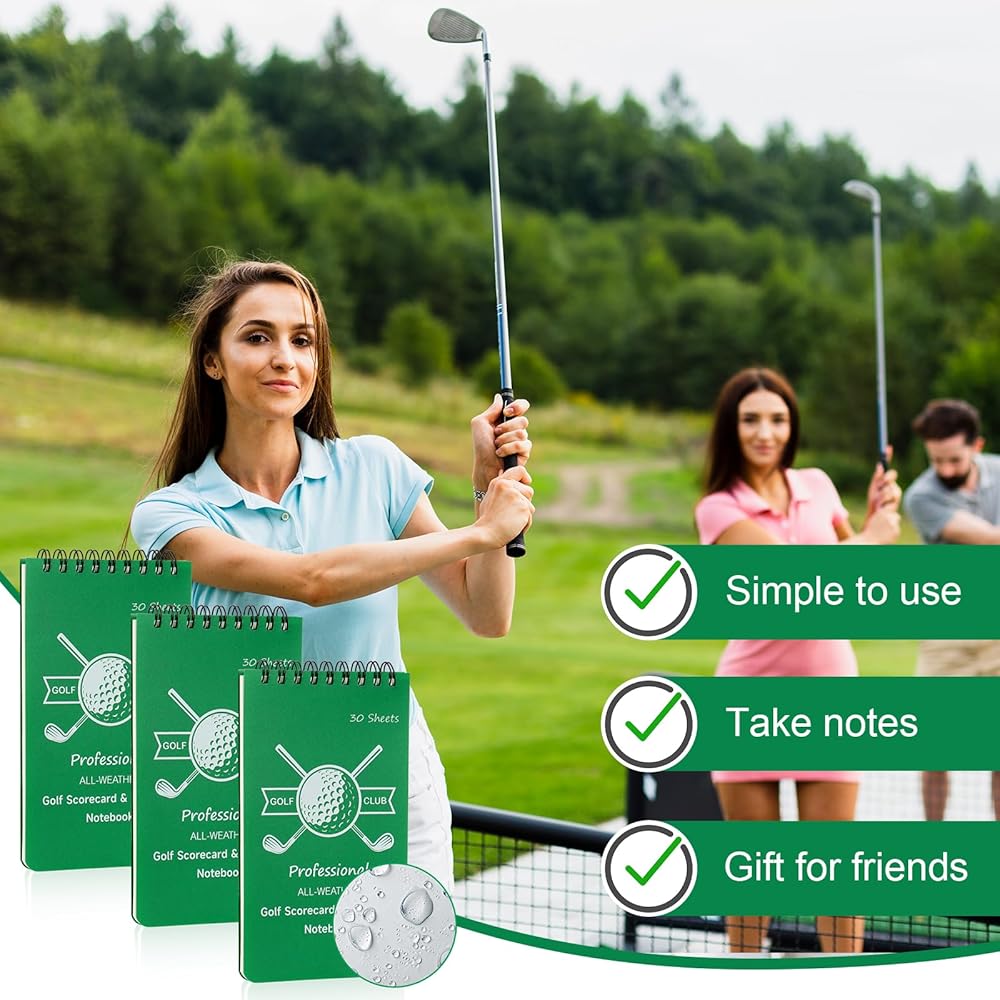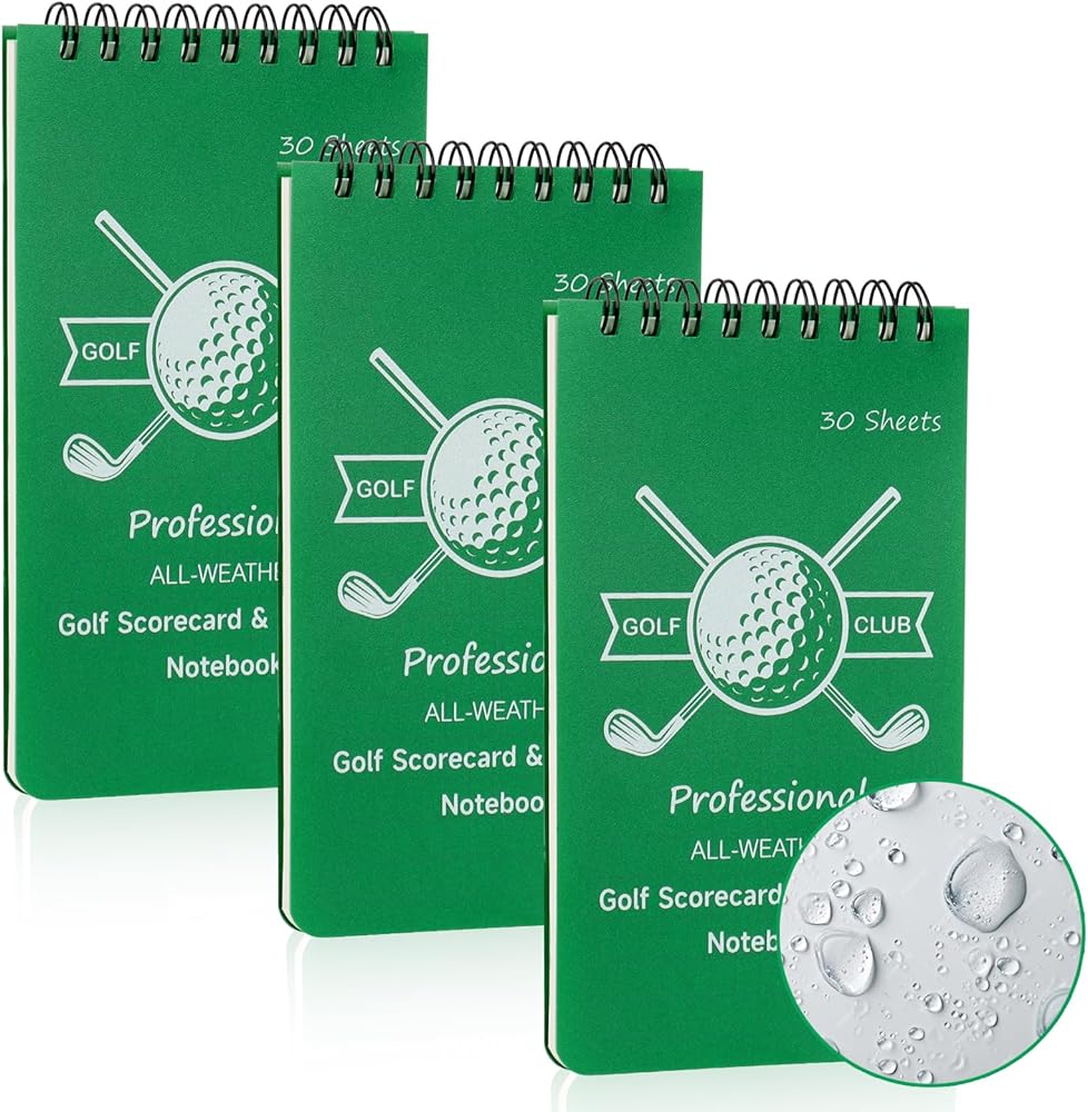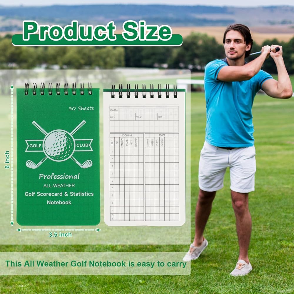 1.You will get:This suit contains 3 pieces Golf Scorecard and Statistics Notebooks and the size of Golf Notebook Back Pocket is 3.5*6 Inch.The Golf journal can be used in indoor and Outdoor Golf Events
