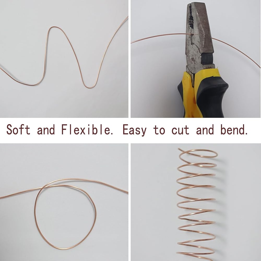 - 【سهولة التعامل】: السلك النحاسي الناعم قوي ومرن. من السهل القطع والشكل والثني واللحام. مثالي للمستخدمين للتصميم والإبداع.
