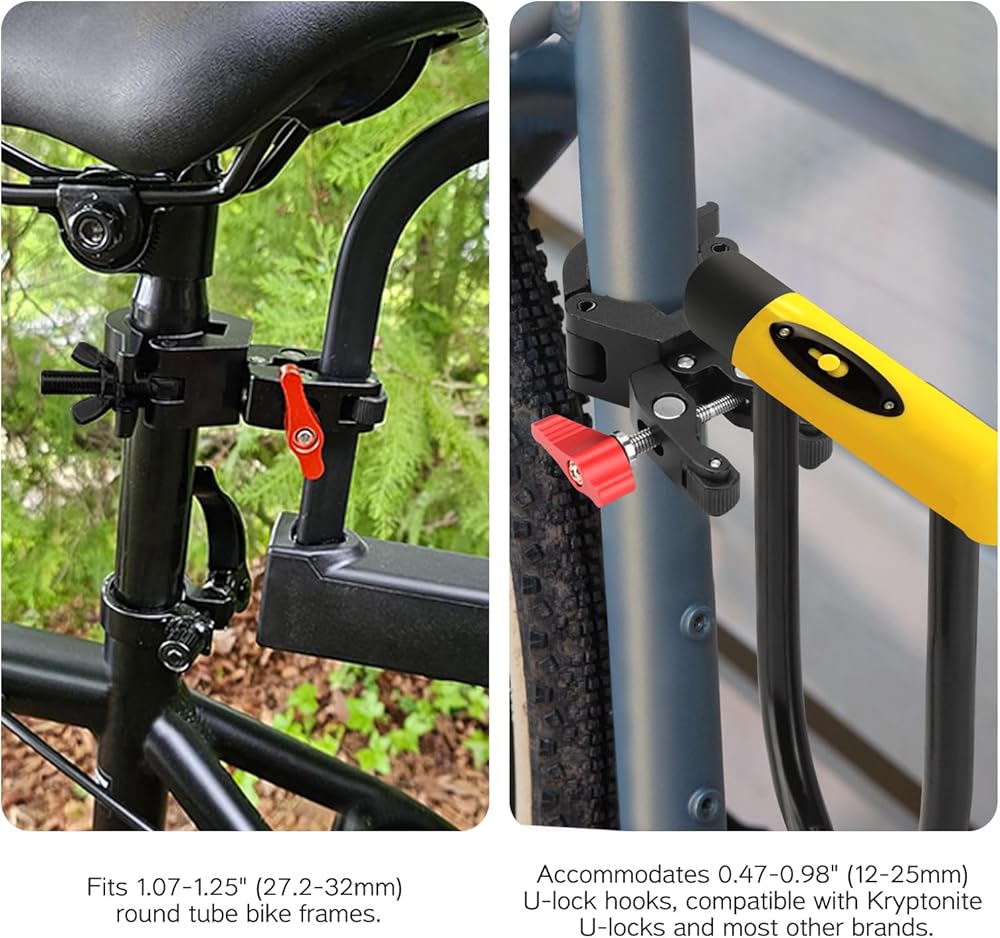 Widely Adaptable: Fit for Kryptonite U-locks and most other brands, suitable for 1.07-1.25 inch (27.2-32 mm) round tube bicycle frames, providing flexible installation options.
