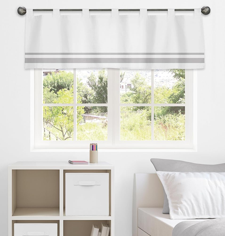 ستارة قصيرة عصرية للنوافذ باللونين الأبيض والرمادي من سويت جوجو ديزاينز